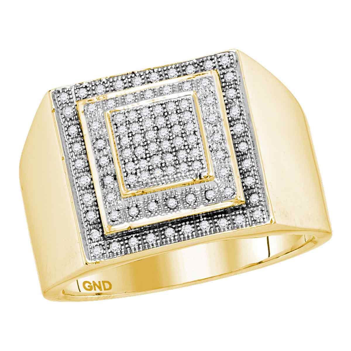 REF-44K9W- SKU: GD85881 ---- 0.30 CTW Mens Diamond Square Cluster Ring 10KT Yellow Gold
