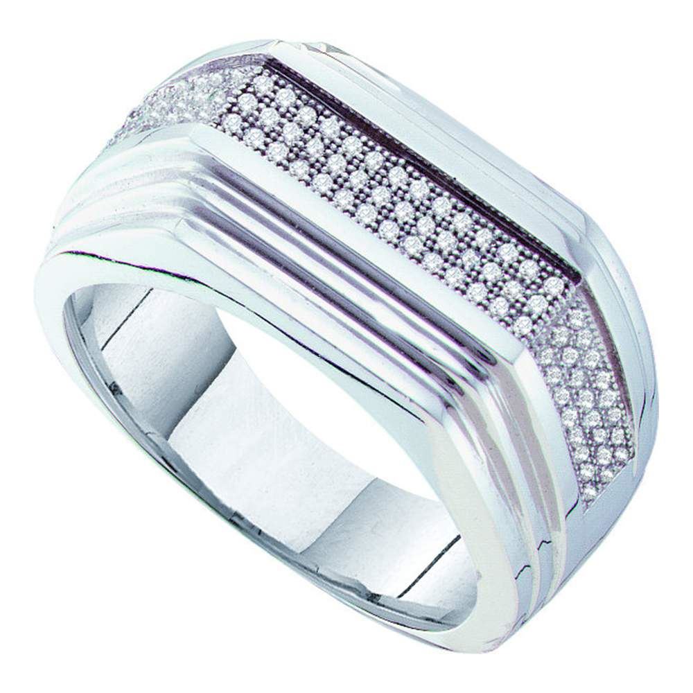 REF-63M2H- SKU: GD50002 ---- 0.30 CTW Mens Pave-set Diamond Ridged Flat Ring 10KT White Gold