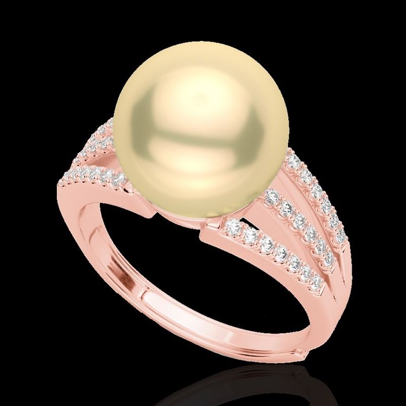 REF-50H8A -22626 ---- 0.30 CTW Micro Pave VS/SI Diamond & Golden Pearl Designer Ring 14K Rose Gold ---- Luxury Designer Brand Ring Appraised at $3,650 Certificate Number US22626 14k Rose gold, Ring Size is 6, Ring measuring approx. 3/4" x 1/4", weighing in total approx. 3.8 grams. Made in the USA and is stamped 14k, Main stone 1.5 carat total weight containing 1 pieces of High Luster color with AAA quality Golden shape cut Pearl , Stone #2 0.3 carat total weight containing 40 pieces of H-I color with VS/SI quality Round shape cut Diamond