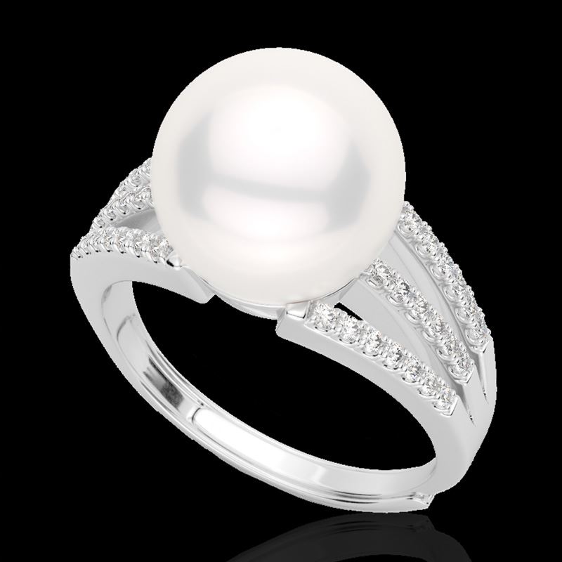 REF-50A8X -22629 ---- 0.30 CTW Micro Pave VS/SI Diamond & Pearl Designer Ring 18K White Gold ---- Luxury Designer Brand Ring Appraised at $3,650 Certificate Number US22629 18k White gold, Ring Size is 6, Ring measuring approx. 3/4" x 1/4", weighing in total approx. 3.8 grams. Made in the USA and is stamped 18k, Main stone 1.5 carat total weight containing 1 pieces of High Luster color with AAA quality White shape cut Pearl , Stone #2 0.3 carat total weight containing 40 pieces of H-I color with VS/SI quality Round shape cut Diamond