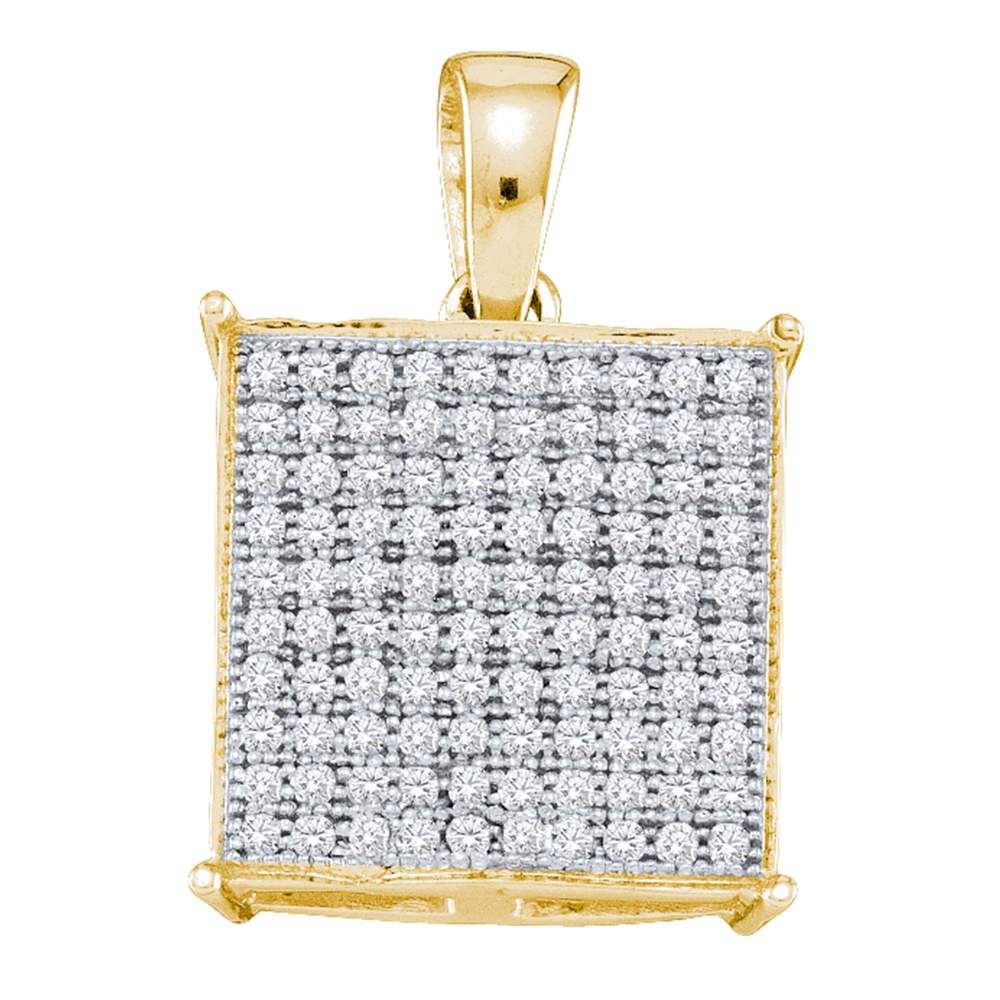 REF-24Y2X- SKU: GD50261 ---- 0.30 CTW Pave-set Diamond Square Cluster Pendant 10KT Yellow Gold