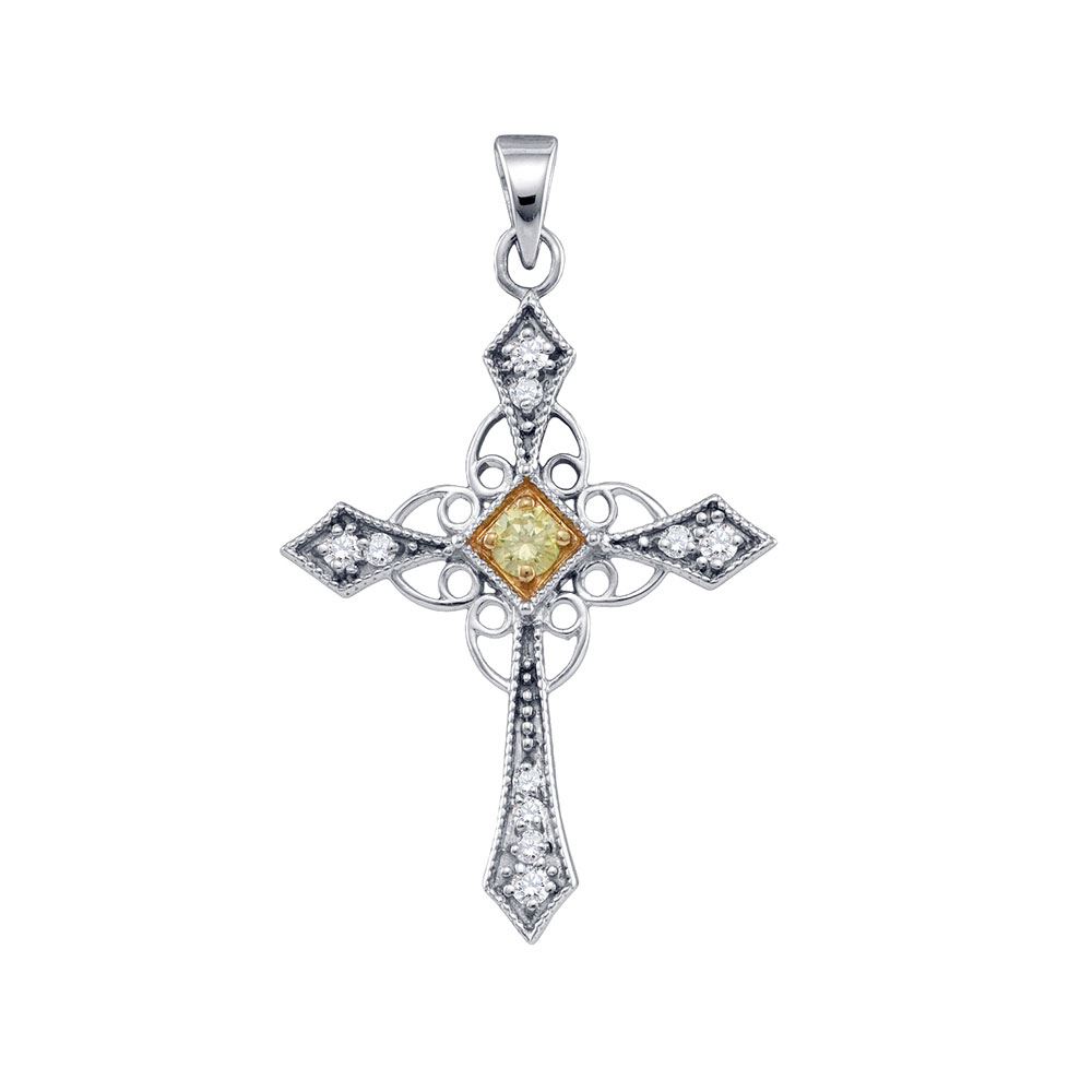 REF-26F9N- SKU: GD65242 ---- 0.30 CTW Yellow Color Diamond Cross Pendant 10KT White Gold