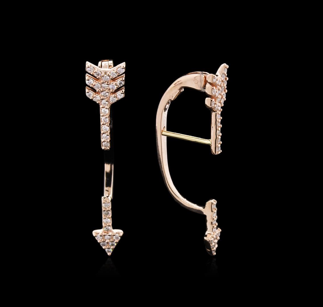 One pair of earrings featuring: 14KT rose gold weighing 3.53 grams containing diamonds with a total weight of 0.30ct.