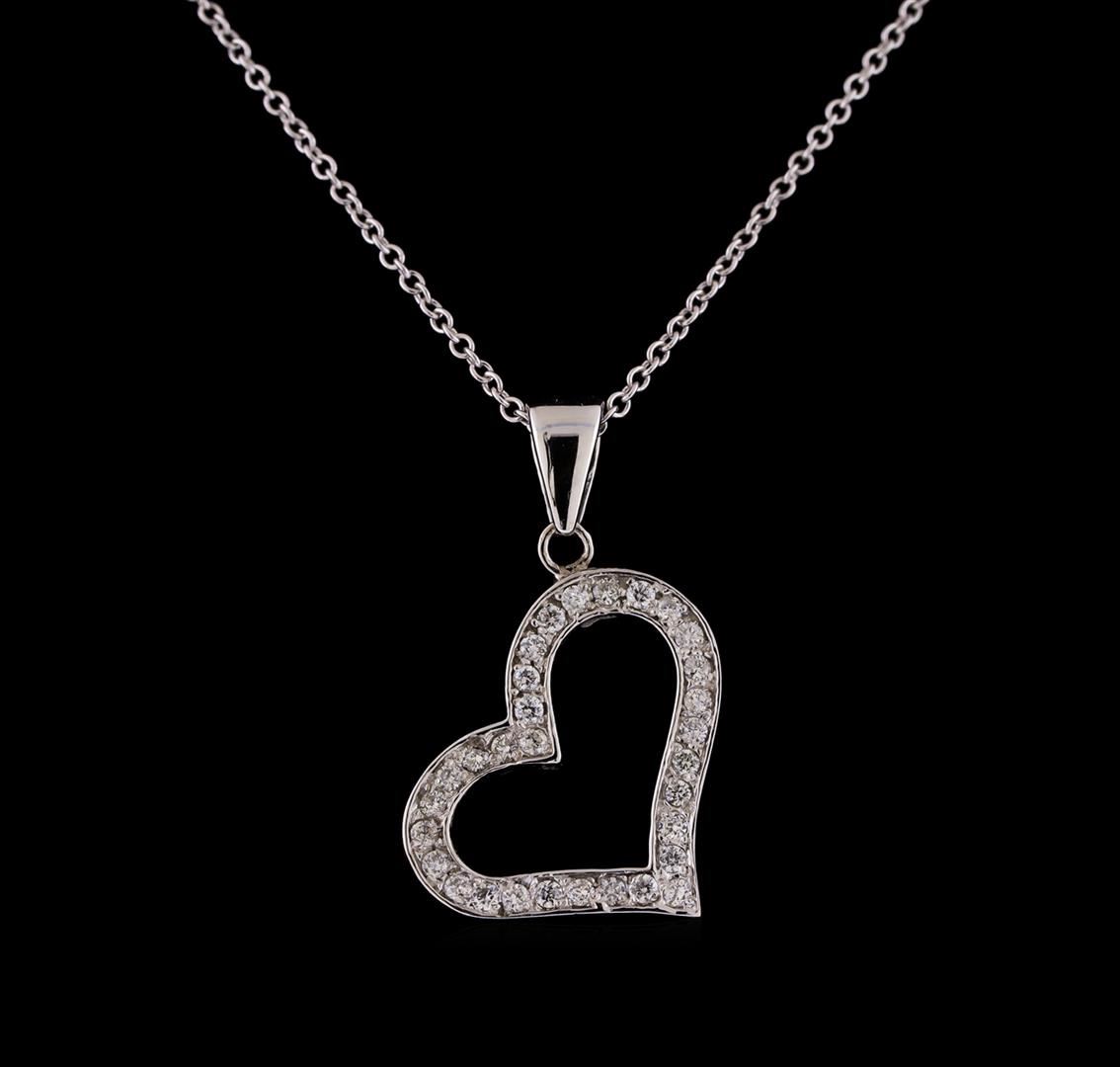 One heart pendant with chain featuring: 14KT white gold weighing 1.65 grams containing diamonds with a total weight of 0.30ct.