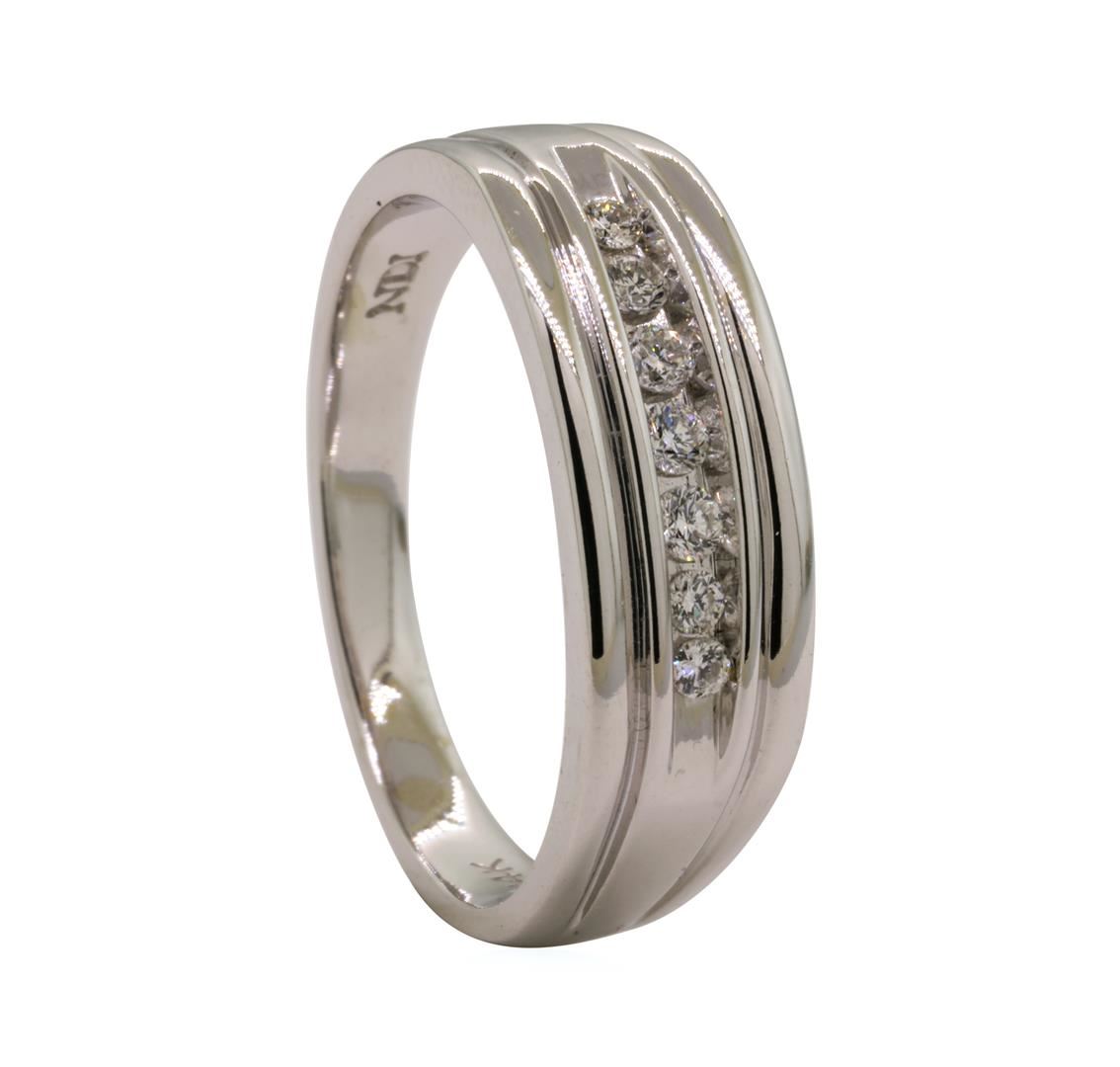 One men's wedding band featuring: 14KT white gold weighing 8.4 grams containing diamonds weighing 0.30ctw.