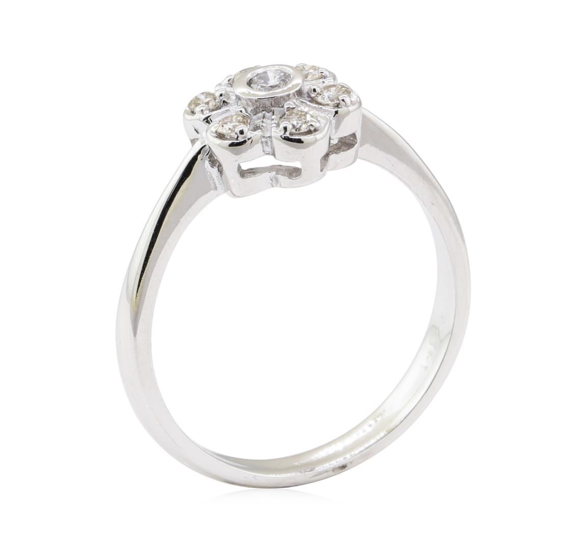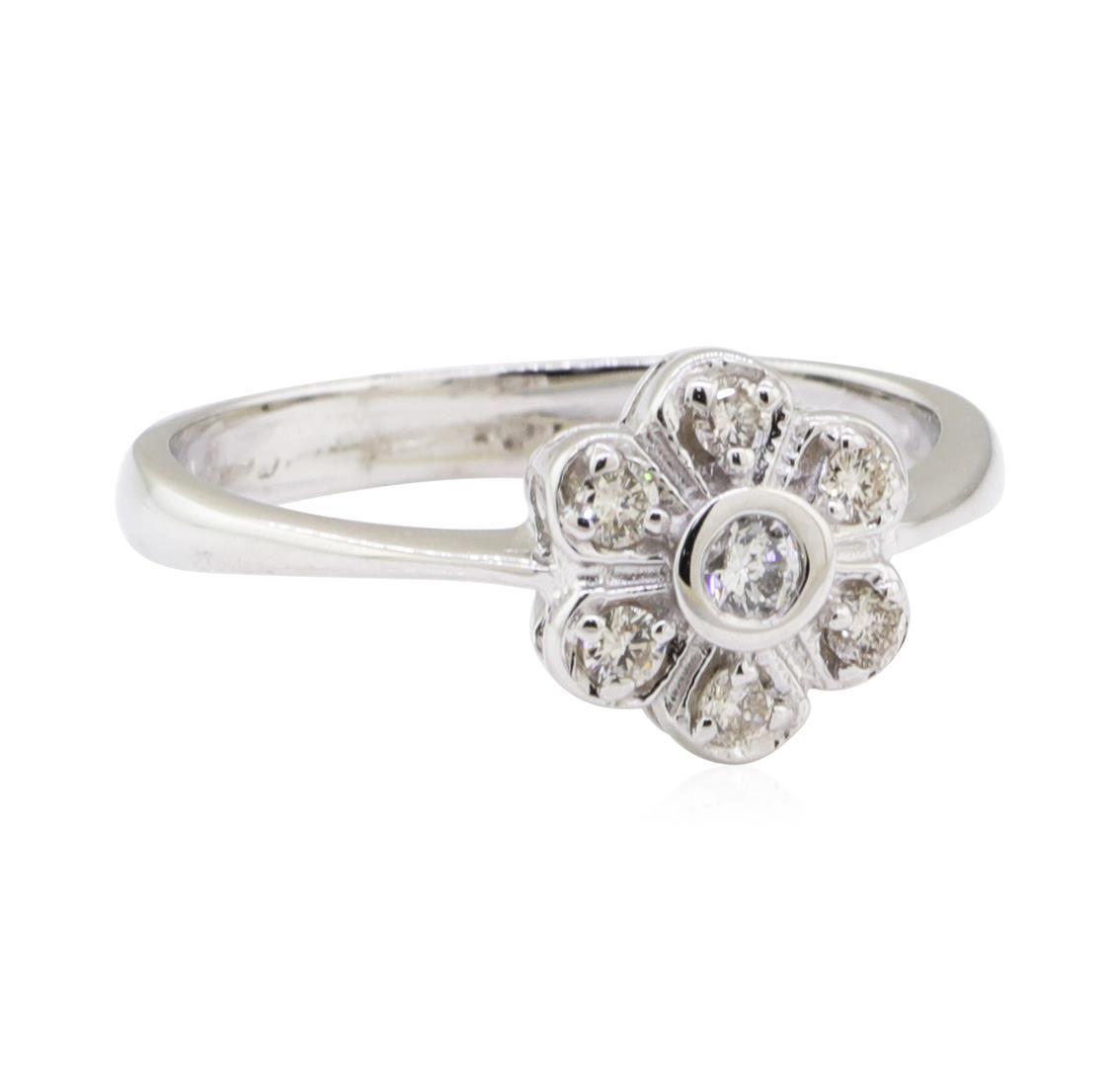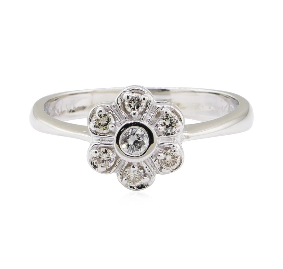 One flower motif ring featuring: 14KT white gold weighing 3.4 grams containing diamonds weighing 0.30ctw.