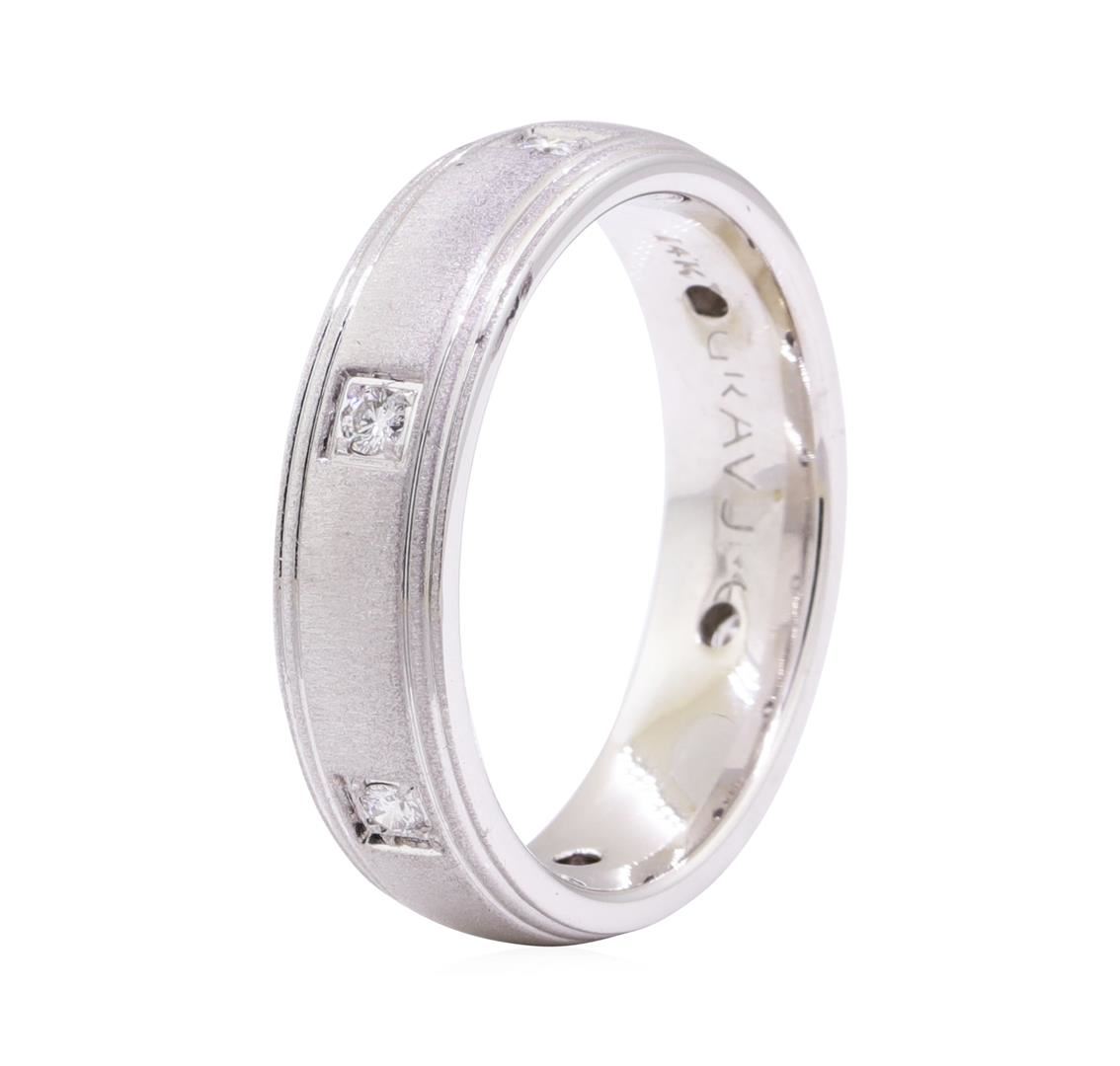 One man's comfort fit band featuring: 14KT white gold weighing 9.0 grams containing diamonds weighing 0.30ctw.