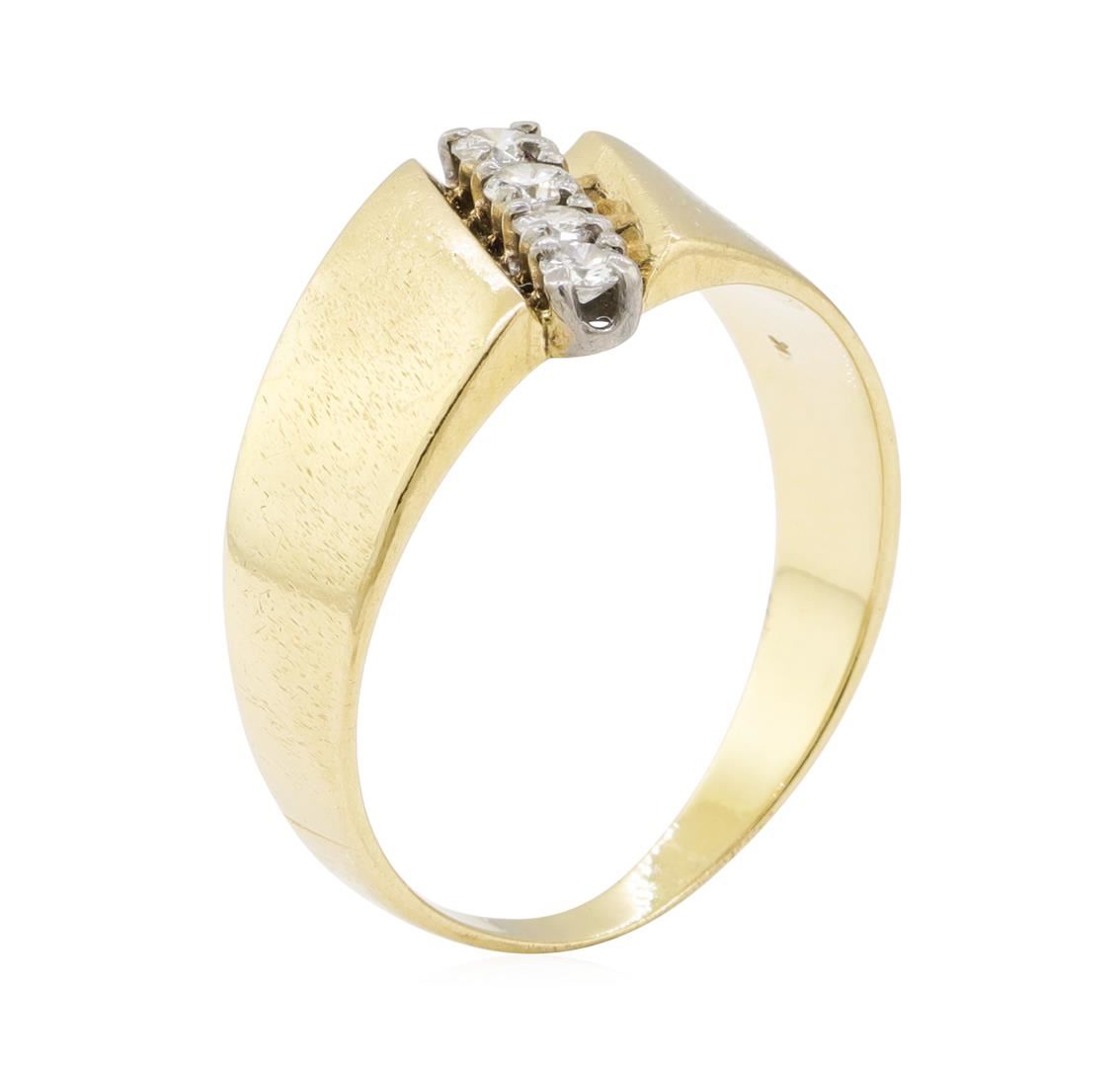 One ring featuring: 14KT yellow gold weighing 6.2 grams containing four diamonds weighing 0.30ctw.