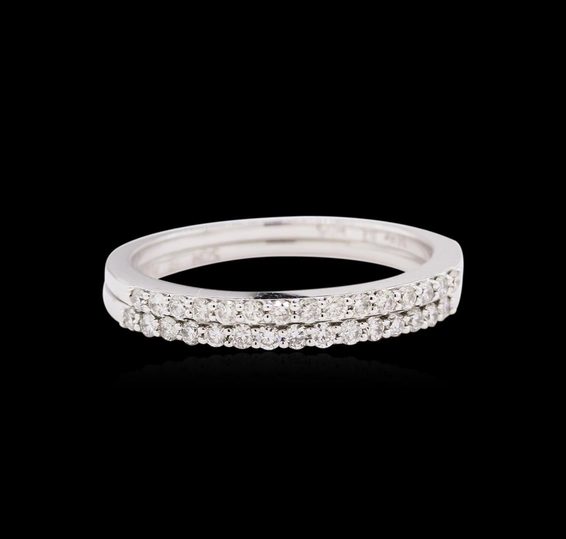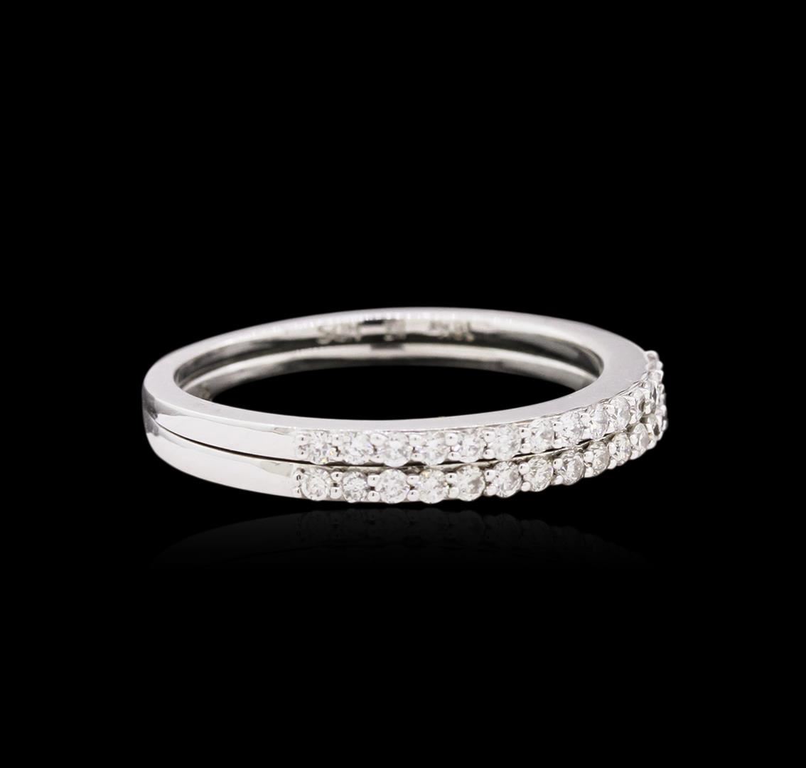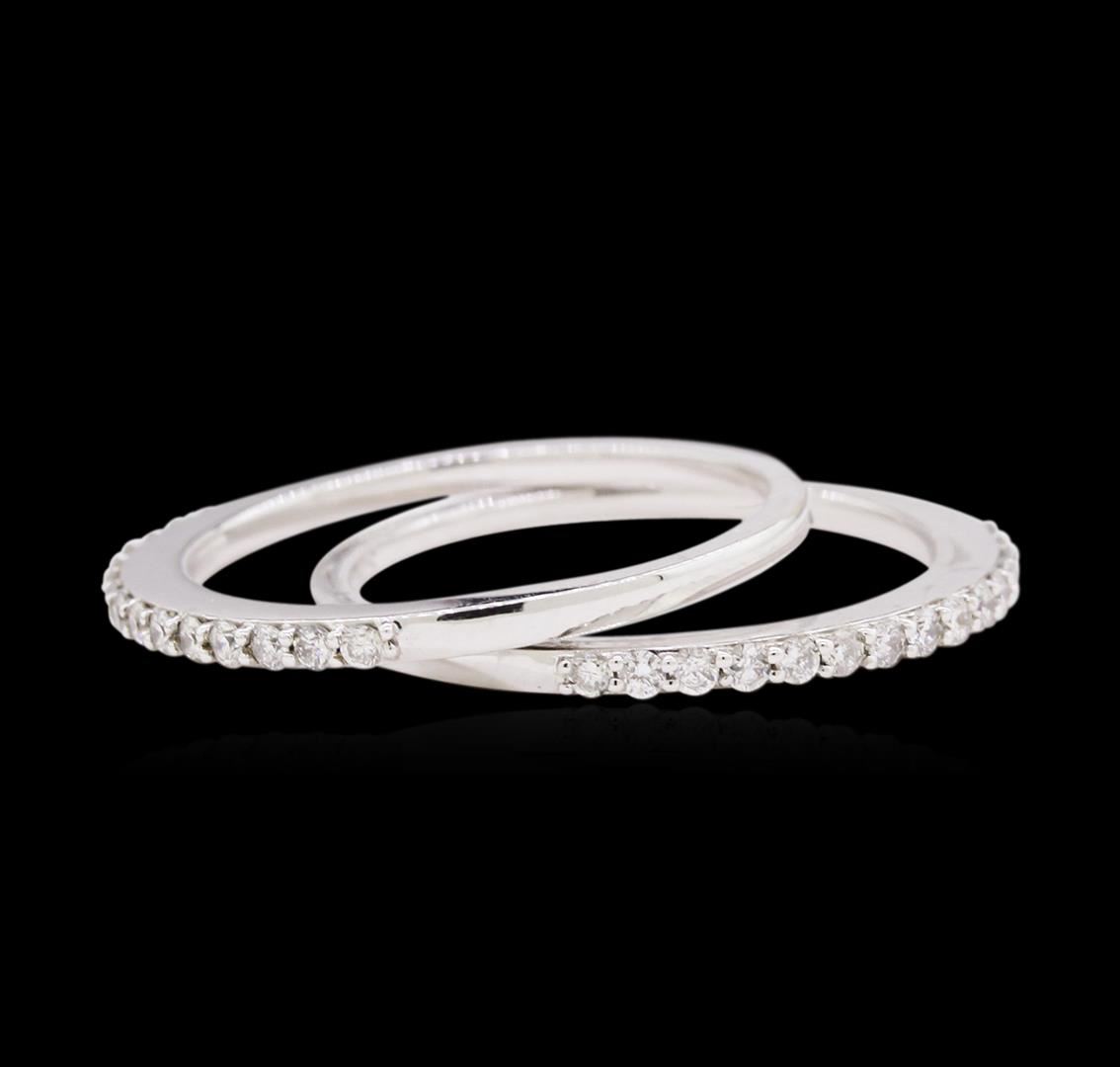 0.30ctw Diamond Ring Set - 18KT White Gold. EACH RING: Size 7; 15 diamonds @.01 pt each; Band thickness: 1.5 mm; 2 g total weight.