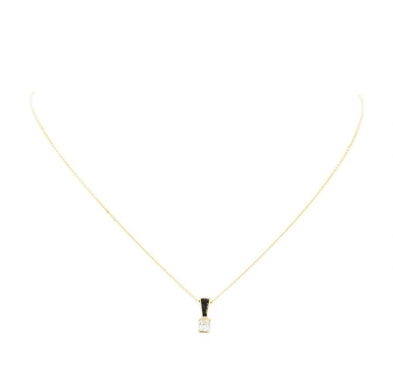 One diamond solitaire pendant with an attached 1mm rounded cable link chain measuring approximately sixteen inches featuring: 14KT yellow gold weighing 1.8 grams containing one diamond weighing 0.30ct.