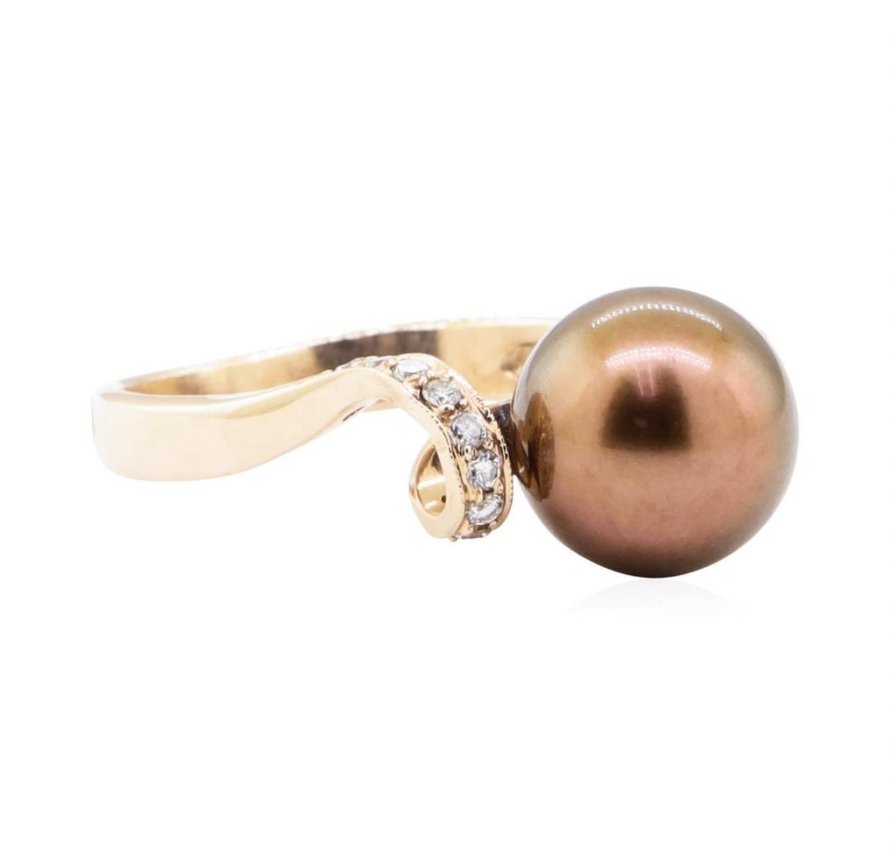 One ring featuring: 14KT rose gold weighing 6.0 grams containing diamonds weighing 0.30ctw and one chocolate pearl measuring 10.9 millimeters in diamter.