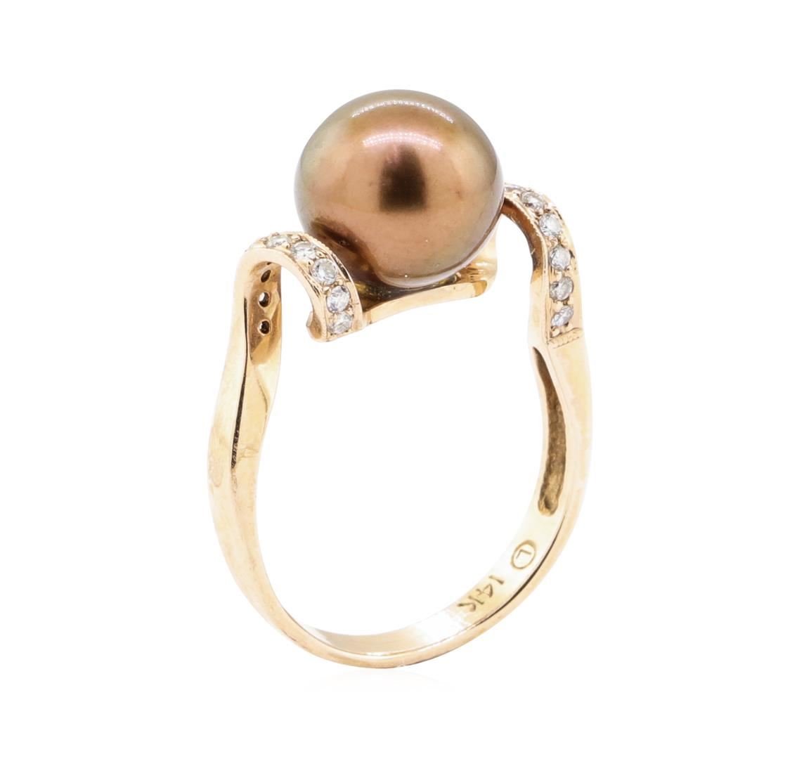 One ring featuring: 14KT rose gold weighing 6.0 grams containing diamonds weighing 0.30ctw and one chocolate pearl measuring 10.9 millimeters in diamter.