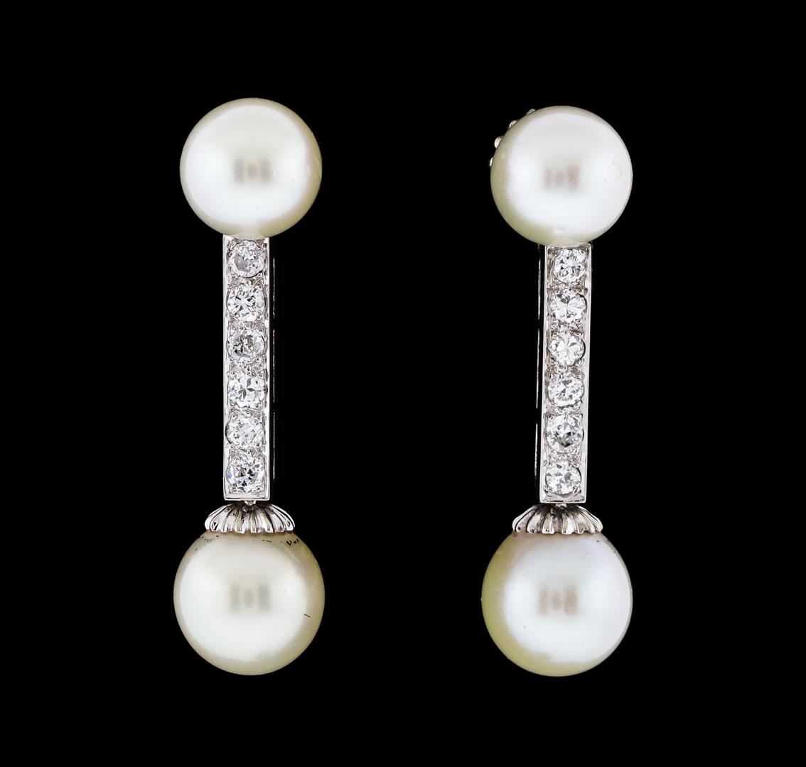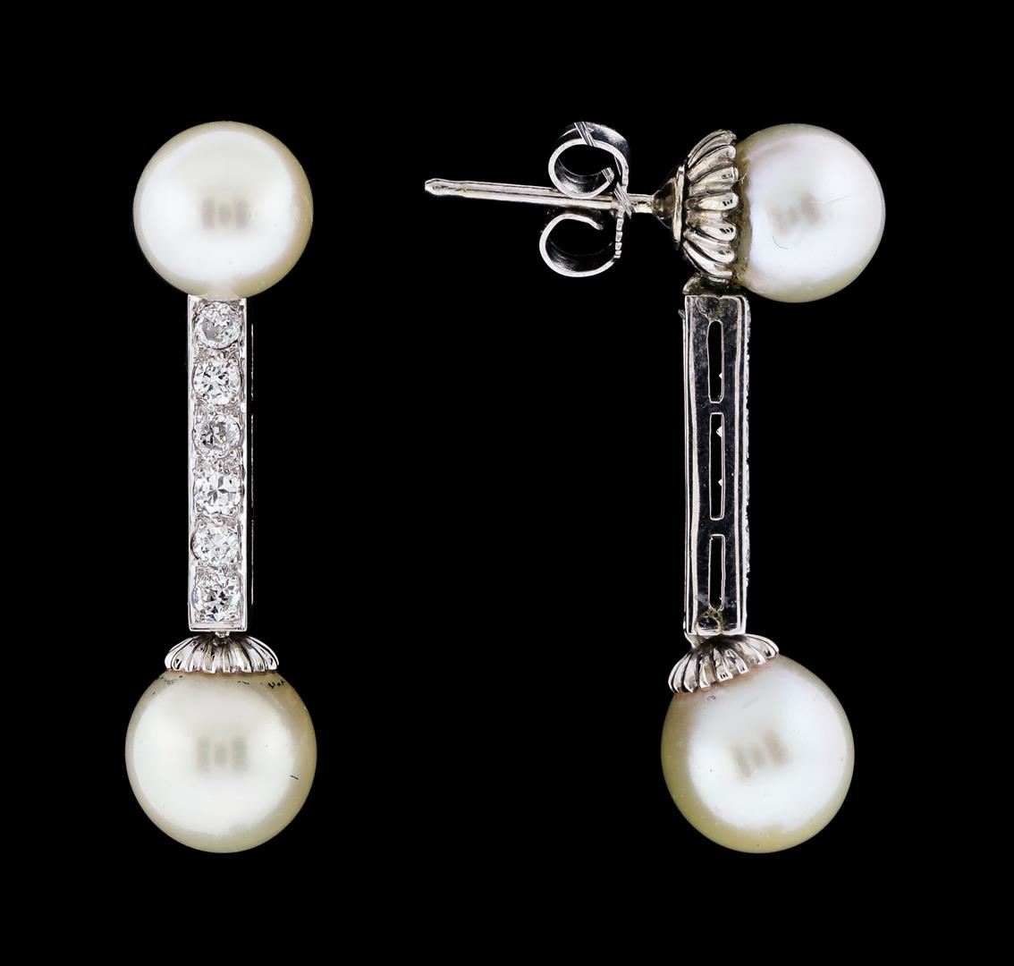 One pair of dangle earrings featuring: 14KT white gold weighing 5.05 grams containing four pearls and diamonds weighing 0.30ctw.