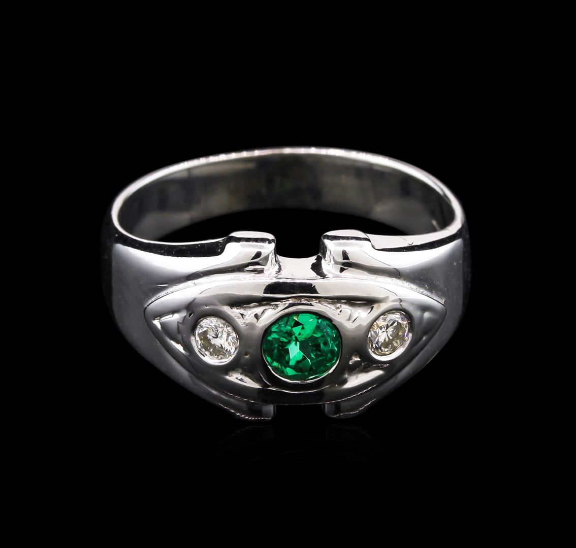 One ring featuring: 14KT white gold weighing 8.10 grams containing one emerald center stone with a total weight of 0.30ct and diamonds with a total weight of 0.20ct.
