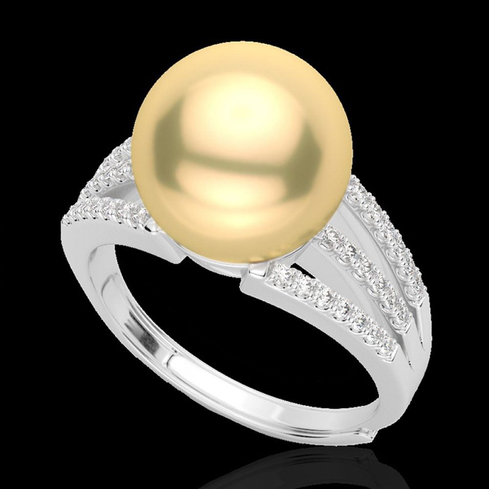 REF-39M3G - SKU: 22625 ---- 0.30 ctw Micro Pave VS/SI Diamond & Golden Pearl Ring 18k White Gold