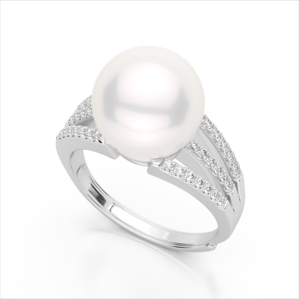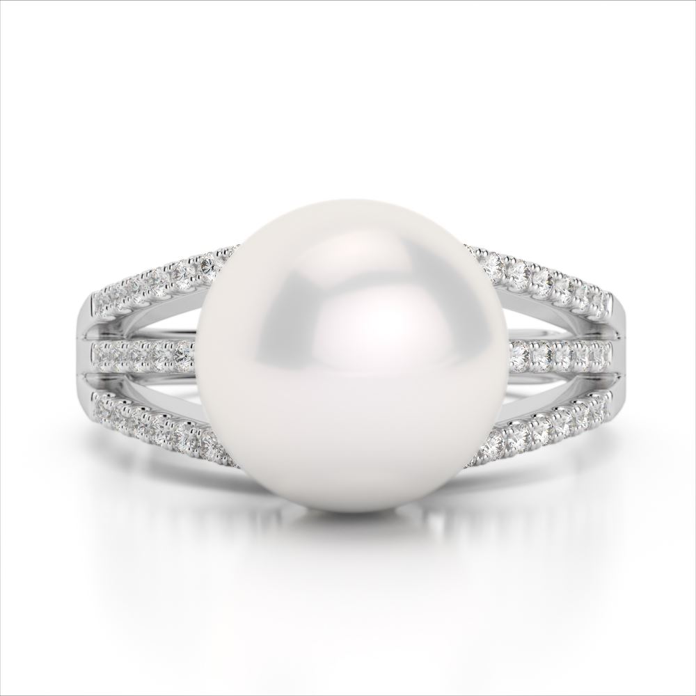 REF-39A3N - SKU: 22629 ---- 0.30 ctw Micro Pave VS/SI Diamond & Pearl Designer Ring 18k White Gold