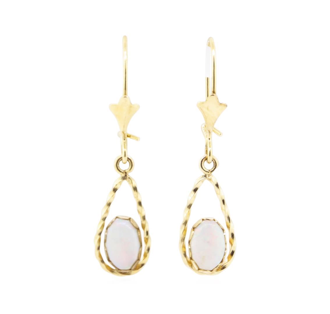 One pair of french wire clip earrings featuring: 14KT yellow gold weighing 1.2 grams containing two opals weighing 0.30ctw.