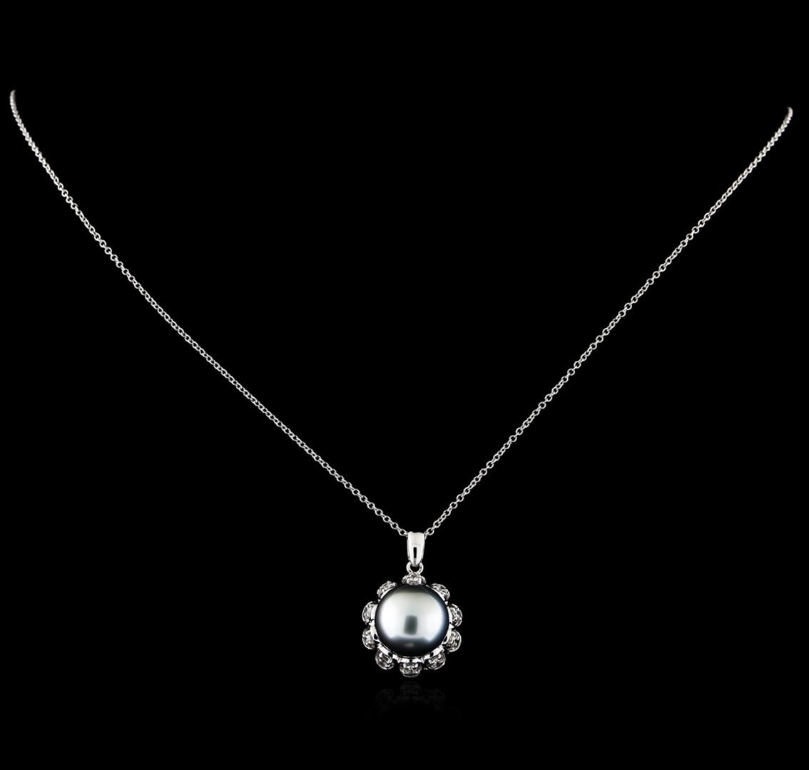 One pendant with chain featuring: 14KT white gold weighing 3.12 grams containing one pearl and diamonds with a total weight of 0.30ct.