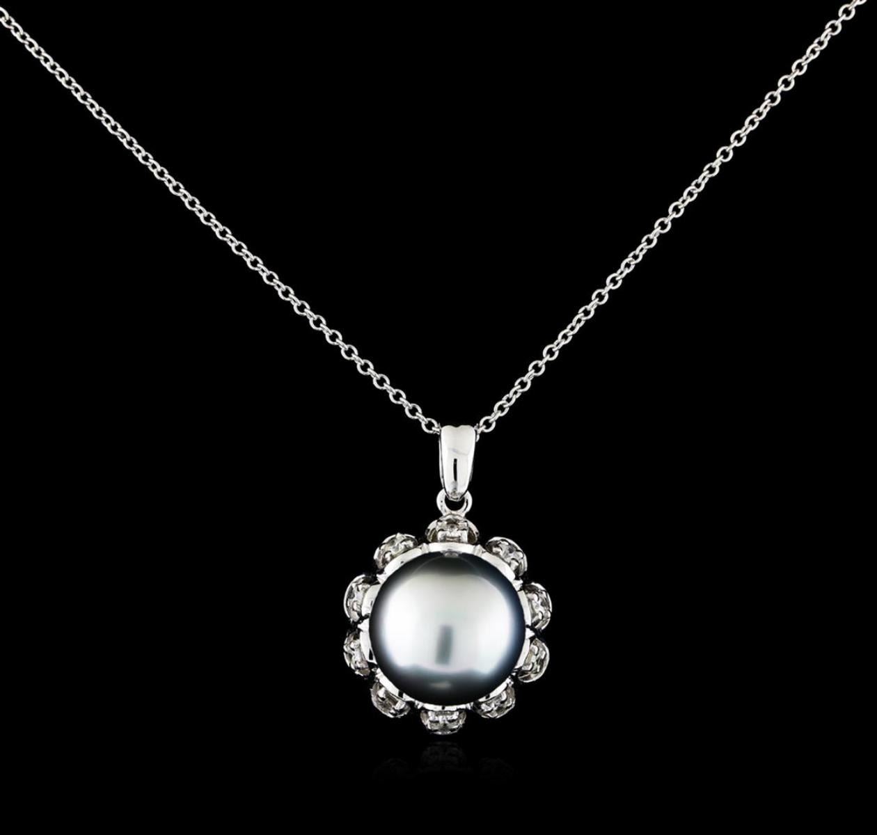 One pendant with chain featuring: 14KT white gold weighing 3.12 grams containing one pearl and diamonds with a total weight of 0.30 ct.