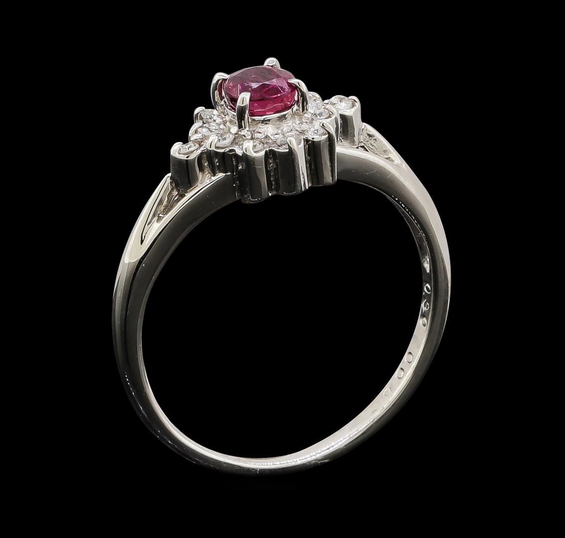 One ring featuring: Platinum containing Ruby with a total weight of 0.30ct and Diamonds with a total weight of 0.08ct. Total Weight of Ring: 3.1 grams.