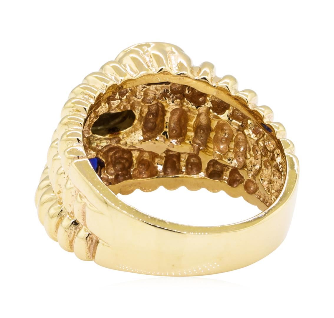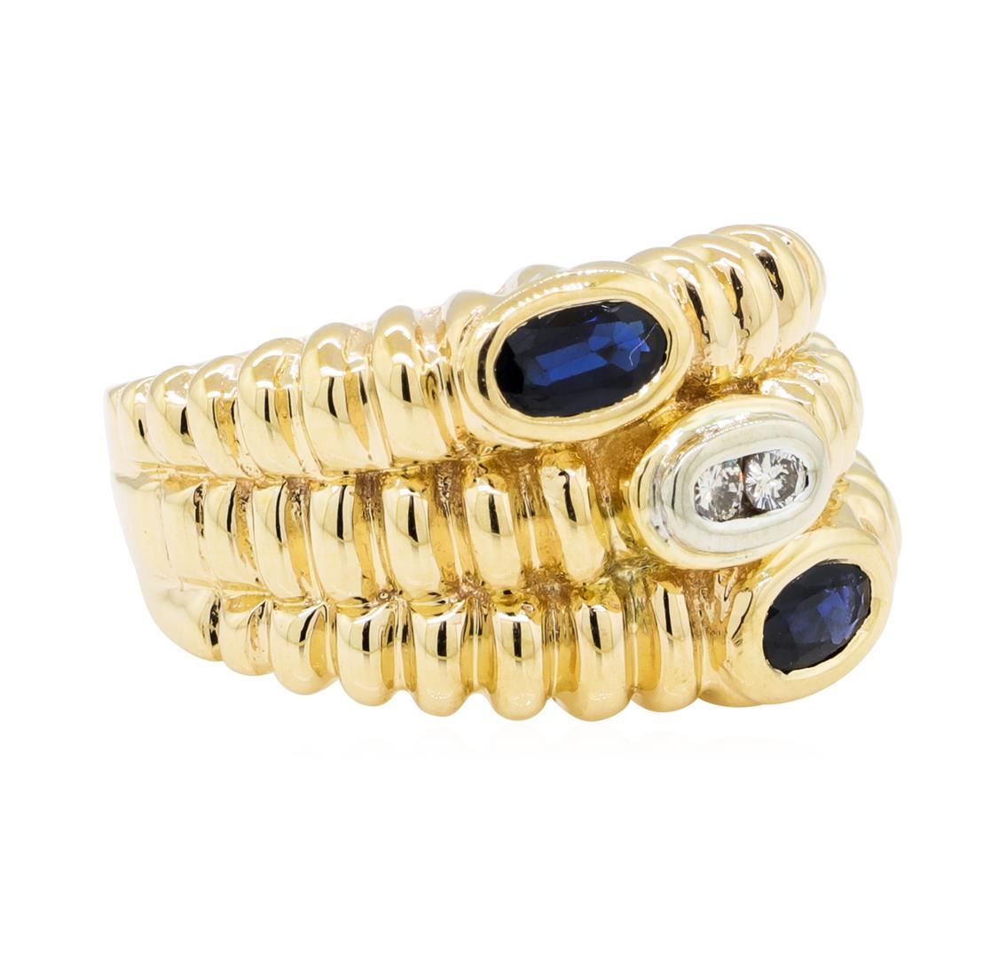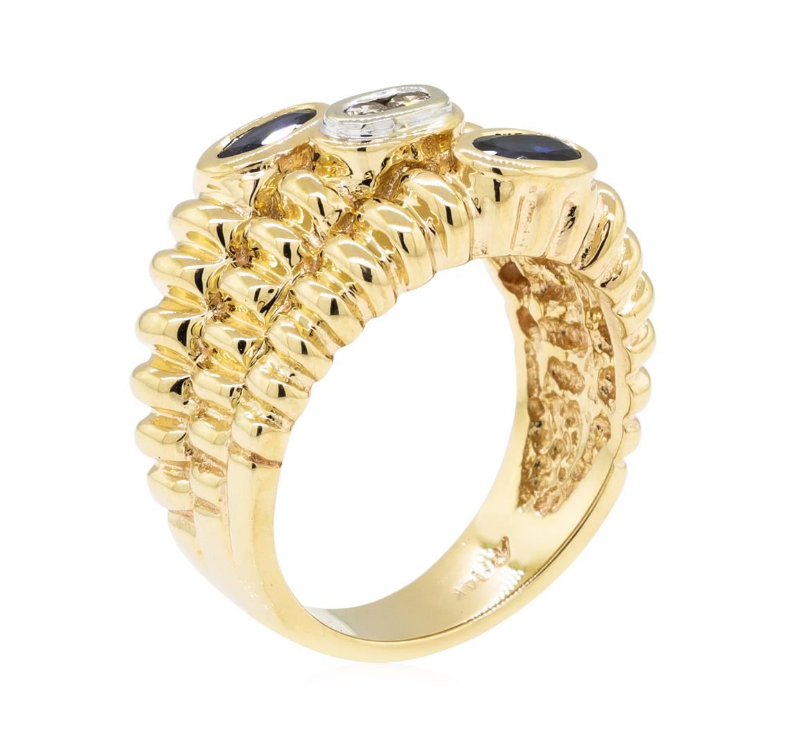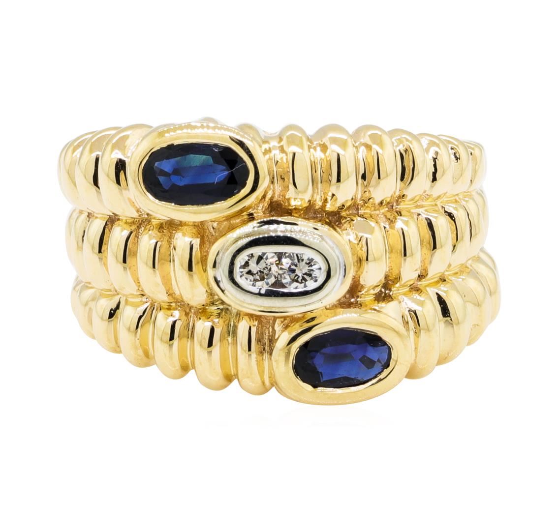 One lady's ring featuring: 14KT yellow gold weighing 8.5 grams containing sapphires weighing 0.30ctw and diamonds weighing 0.07ctw.