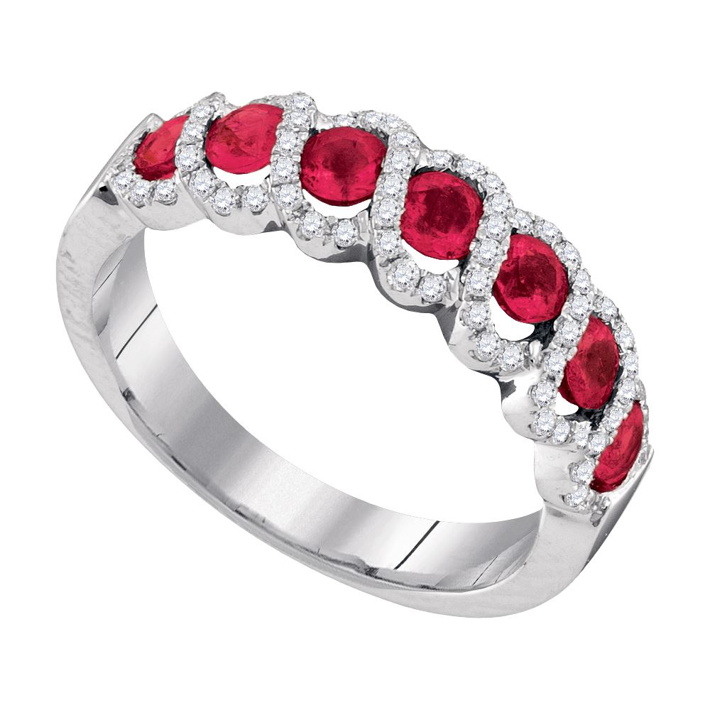REF-82H4Y ---- 0.30CT Diamond and 0.75CT Ruby Anniversary 14KT Ring White Gold - SKU: GD 94750