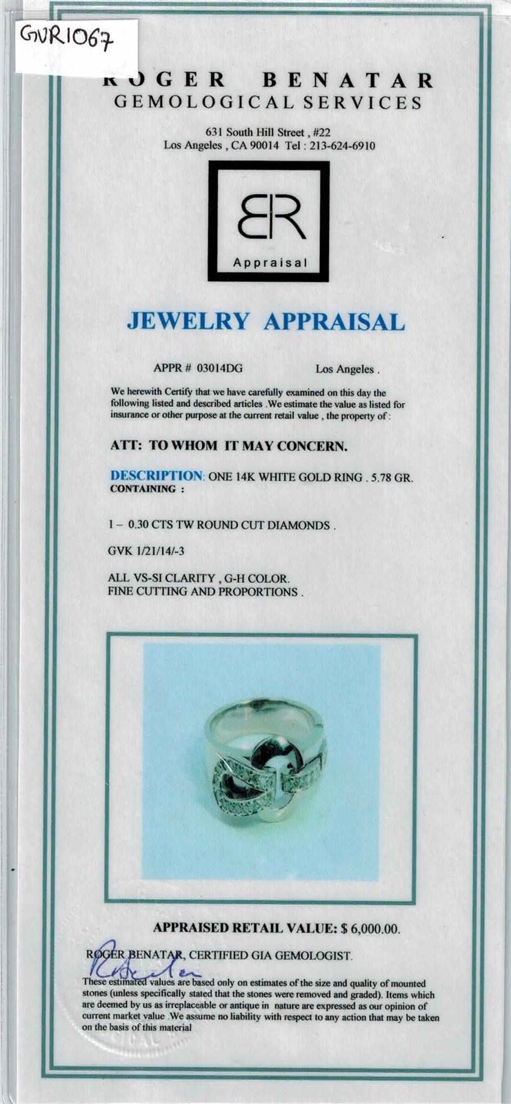 14K WHITE GOLD NATURAL DIAMOND RING:5.78 GRAMS/DIAMOND:0.30CT//#GVR1067 **Handsomely mounted in 14k white gold, twinkling bands of 0.30ct Round Cut Diamonds are known to enhance inner vision and stimulate the imagination. Set in a motif of links, this piece conveys a powerful embrace of divinity sent to highten one's consciousness and fortitude.**