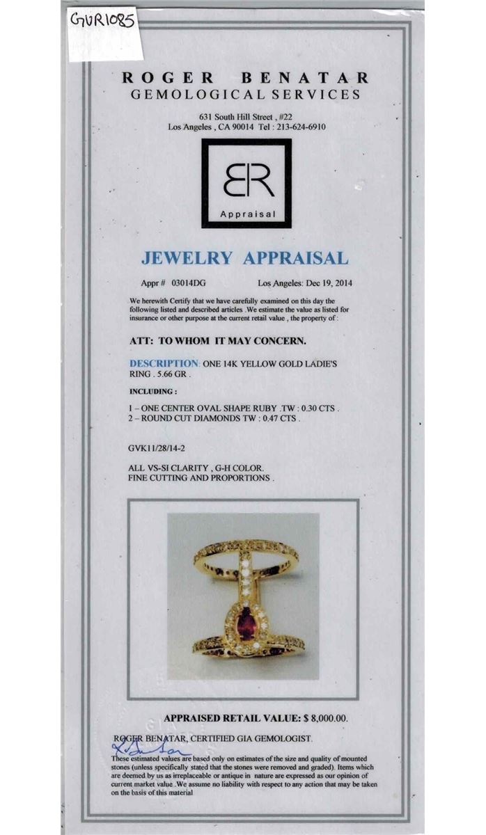 14K YELLOW GOLD NATURAL RUBY RING:5.66 GRAMS/DIAMOND:0.47CT/RUBY:0.30CT/#GVR1085/NO LEAD OR GLASS FILLING