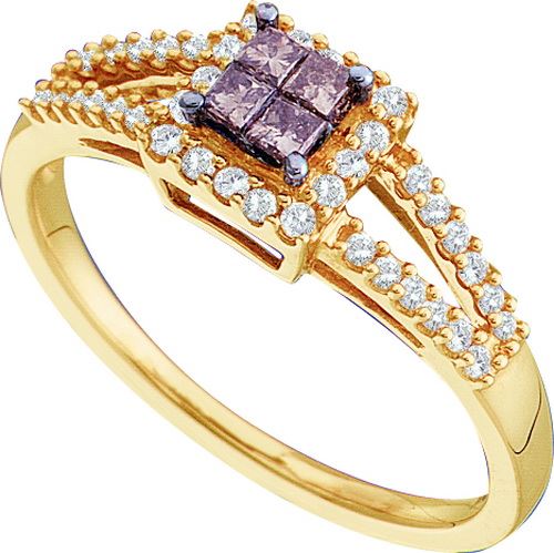 REF-38H9Y ---- 0.30CTW White and Champagne Diamond Invisible 14KT Ring Yellow Gold - SKU: GD 47237