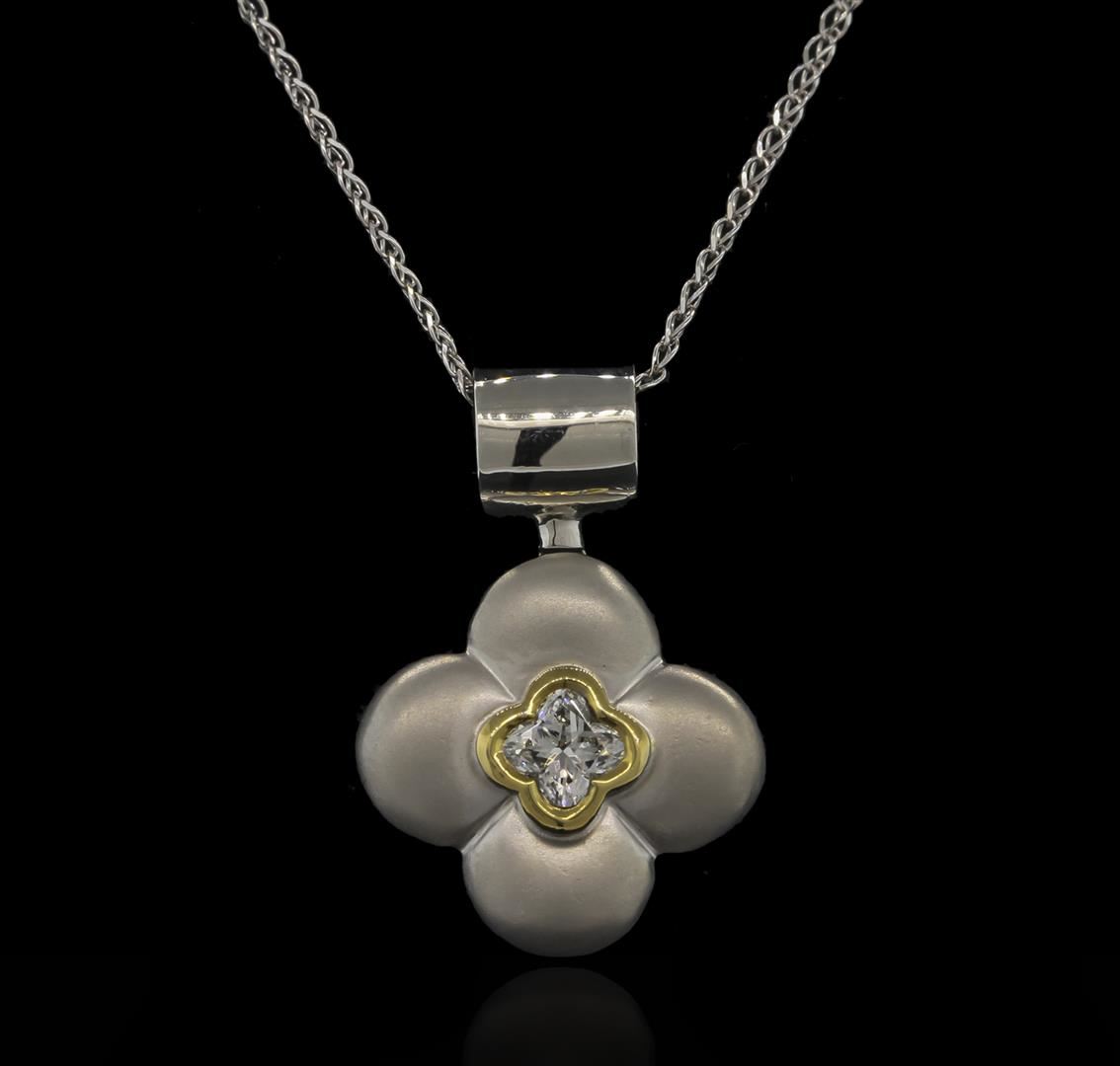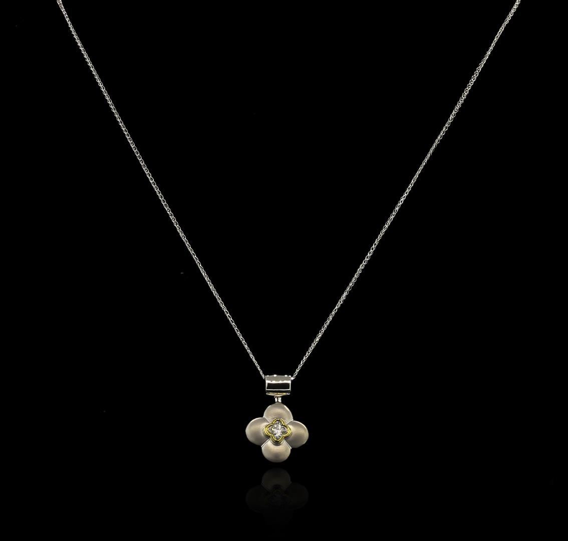 One pendant with chain featuring: 14KT white and yellow gold weighing 7.60 grams containing one diamond center stone with a total weight of 0.30ct.