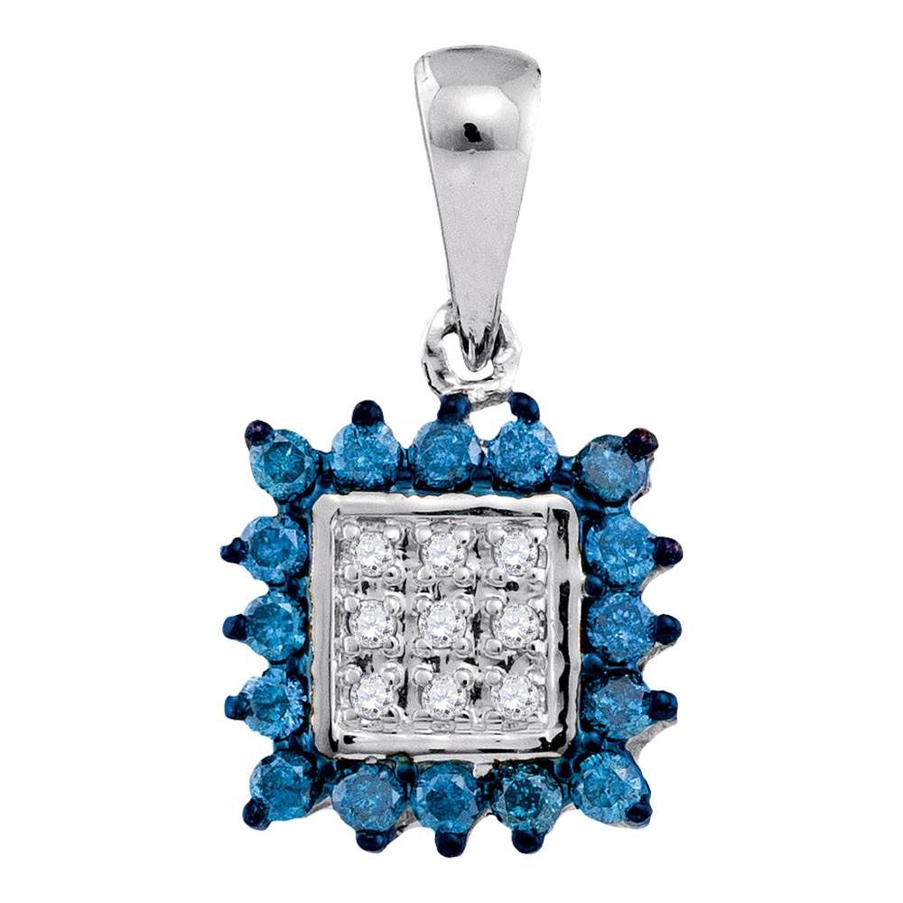 REF-14X9Y- SKU: GD89283 ---- 0.31 CTW Blue Color Diamond Square Cluster Pendant 10KT White Gold