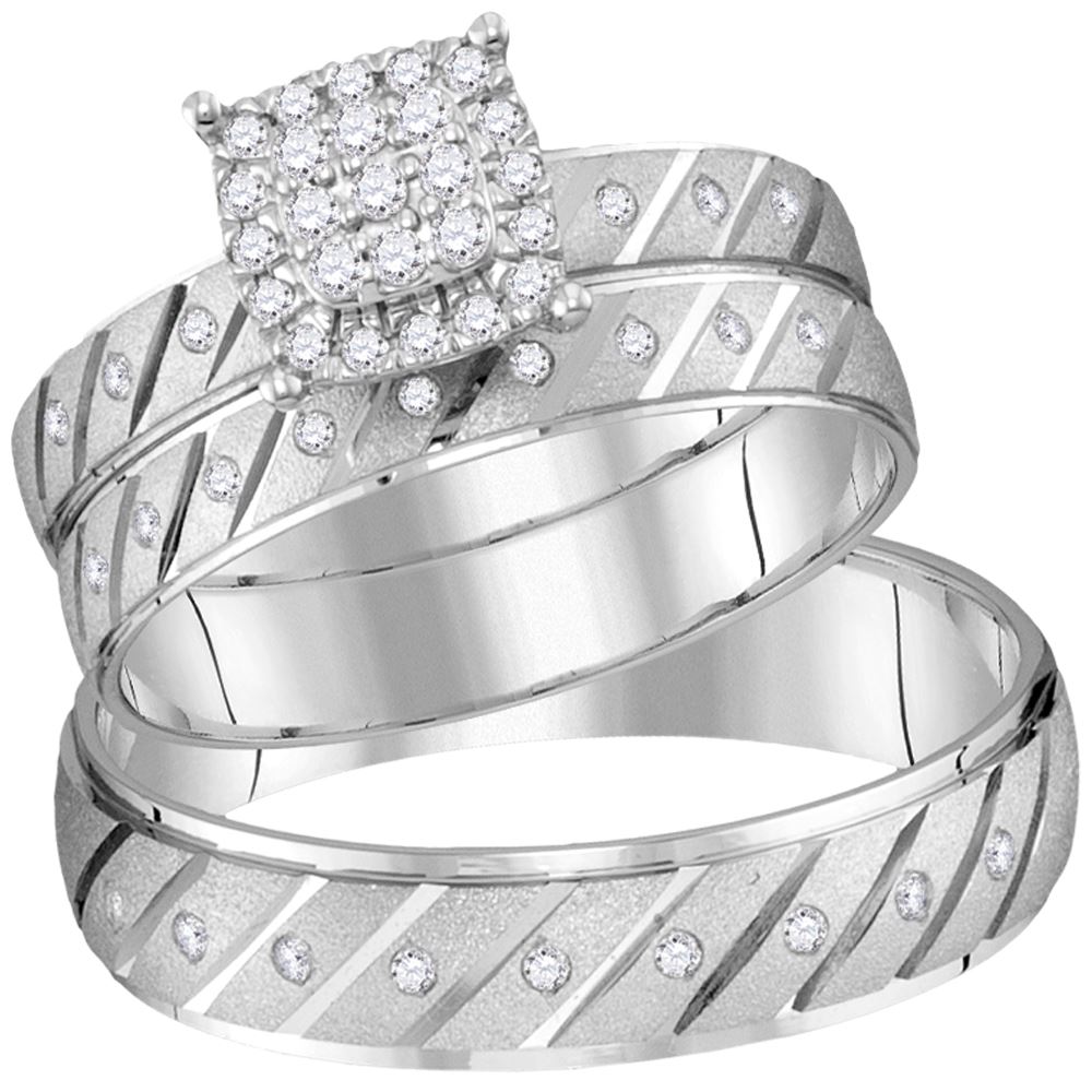 REF-71N3F- SKU: GD113879 ---- 0.31 CTW His & Hers Diamond Cluster Matching Bridal Ring 14KT White Gold