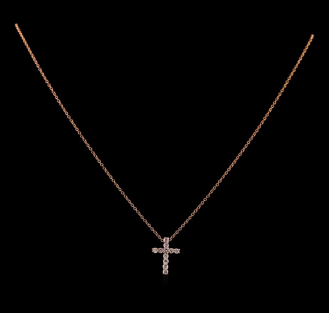 One cross pendant with chain featuring: 14KT rose gold weighing 1.92 grams containing diamonds weighing 0.31ctw.