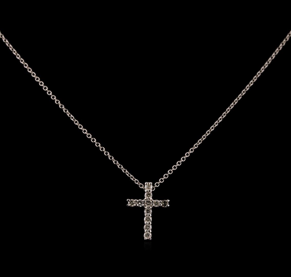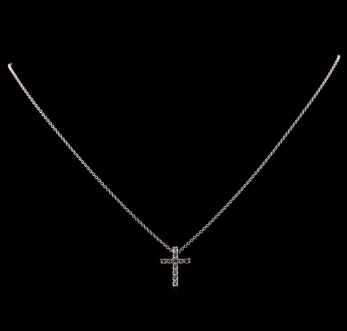One cross pendant with chain featuring: 14KT white gold weighing 2.70 grams containing diamonds weighing 0.31ctw.