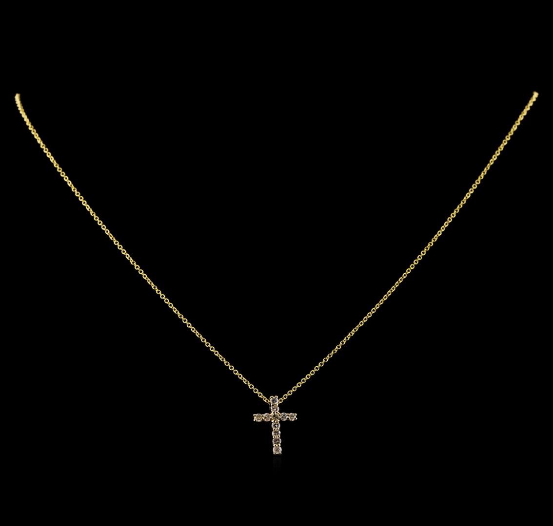 One cross pendant with chain featuring: 14KT yellow gold weighing 1.78 grams containing diamonds weighing 0.31ctw.