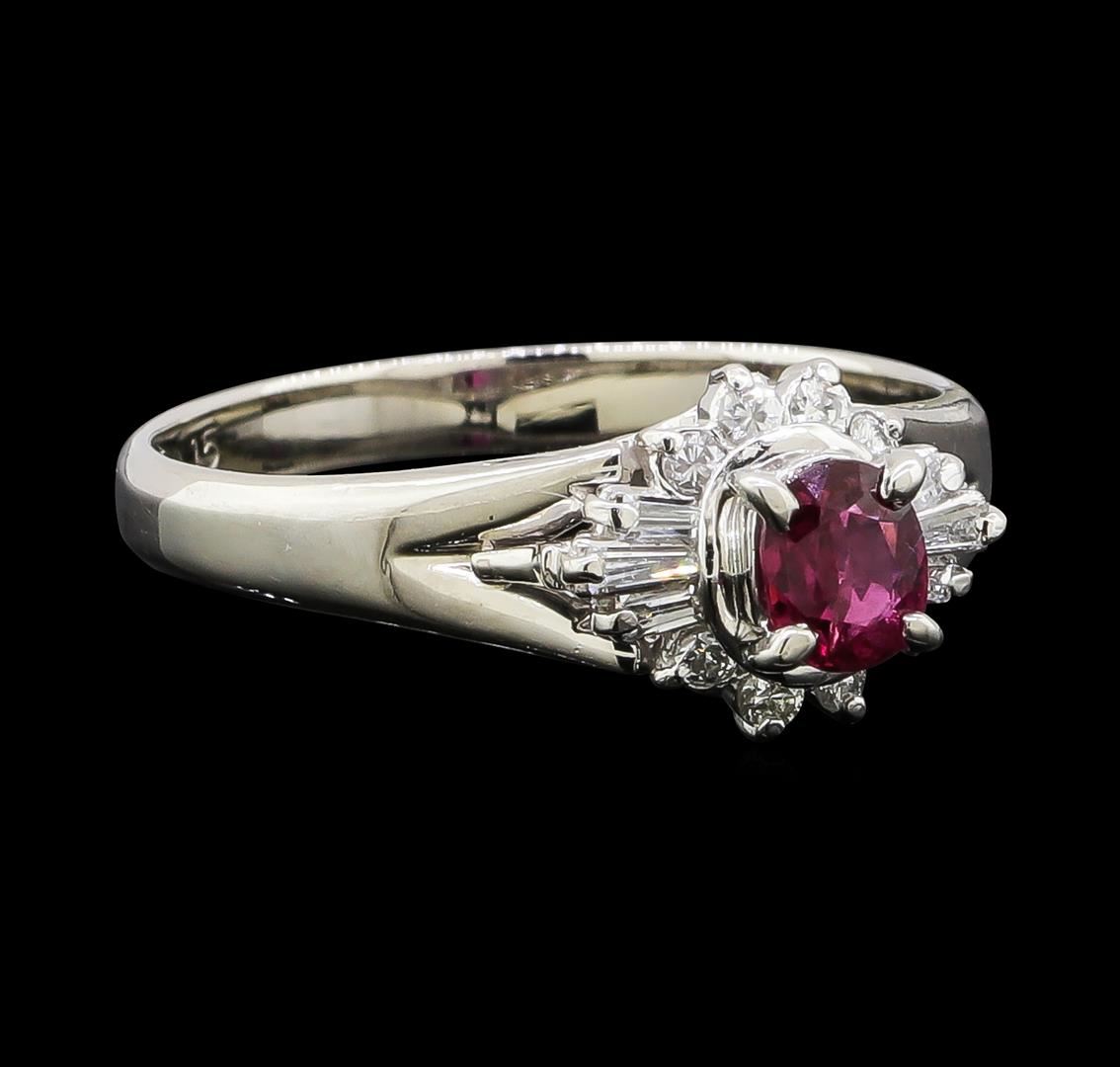 One ring featuring: Platinum containing Ruby with a total weight of 0.31ct and Diamonds with a total weight of 0.15ct. Total Weight of Ring: 3.4 grams.