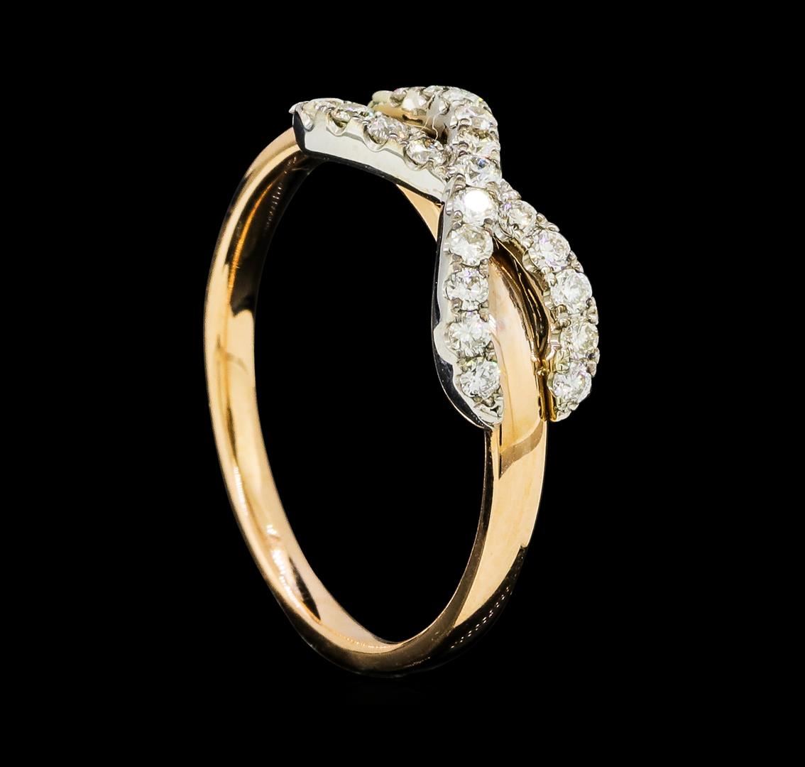One lady's ring featuring: 14KT rose and white gold weighing 2.7 grams containing diamonds weighing 0.32ctw.