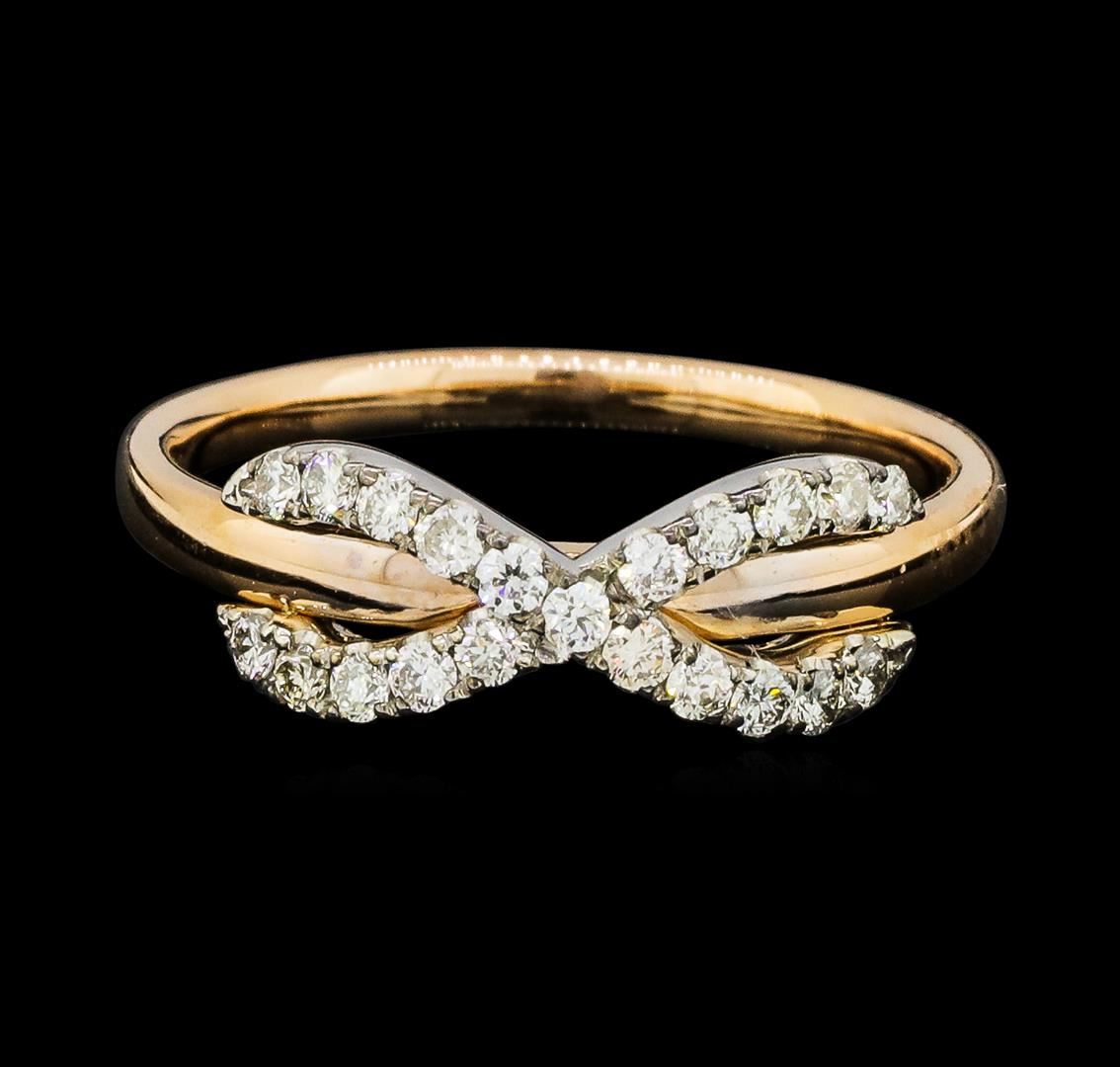 One lady's ring featuring: 14KT rose and white gold weighing 2.7 grams containing diamonds weighing 0.32ctw.