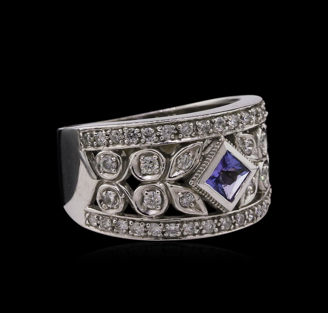 One ring featuring: 14KT white gold weighing 8.50 grams containing one tanzanite center stone with a total weight of 0.32ct and diamonds with a total weight of 0.55ct.