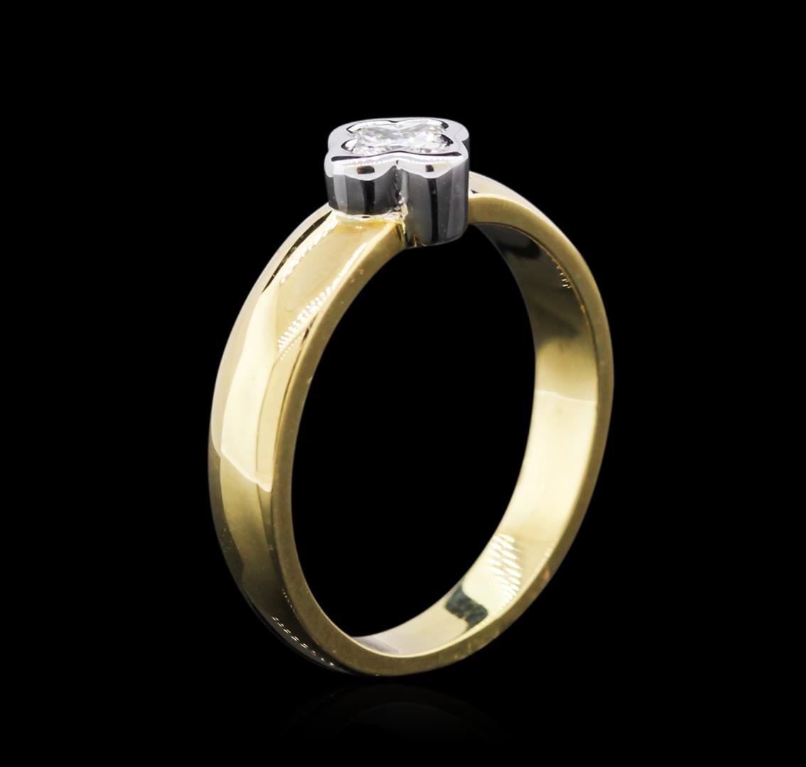 One solitaire ring featuring: 18KT yellow and white gold weighing 3.20 grams containing one diamond center stone with a total weight of 0.32ct.