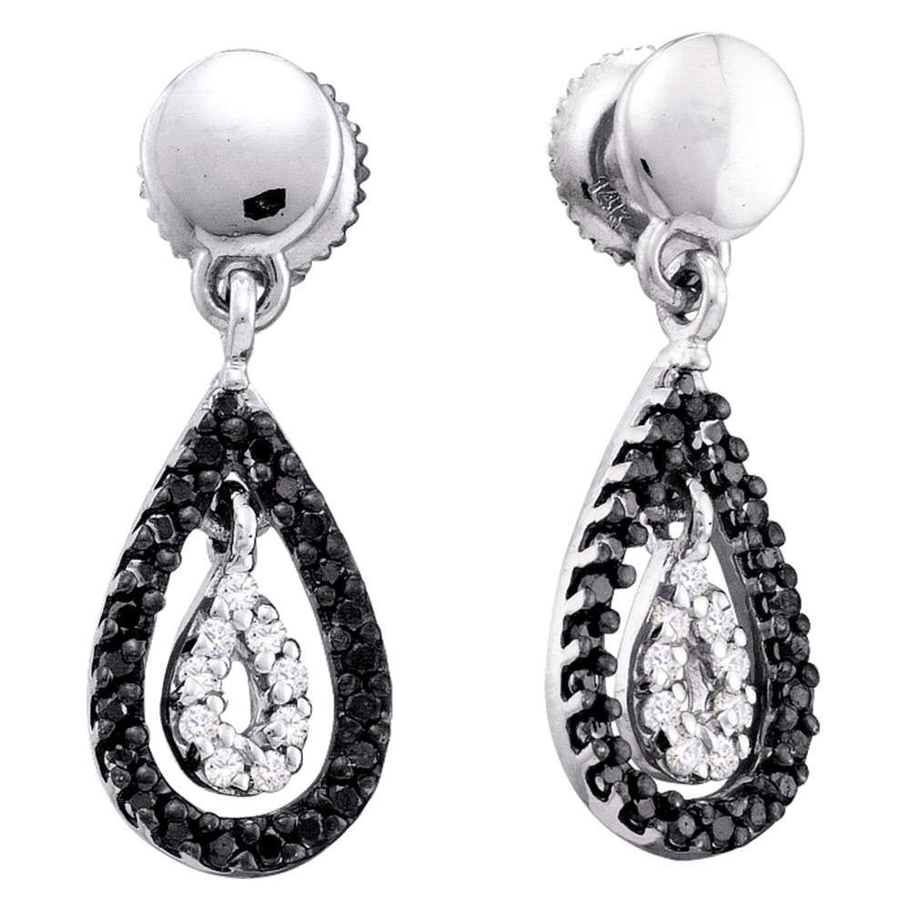 REF-30M2H- SKU: GD54197 ---- 0.33 CTW Black Color Diamond Small Teardrop Dangle Earrings 14KT White Gold