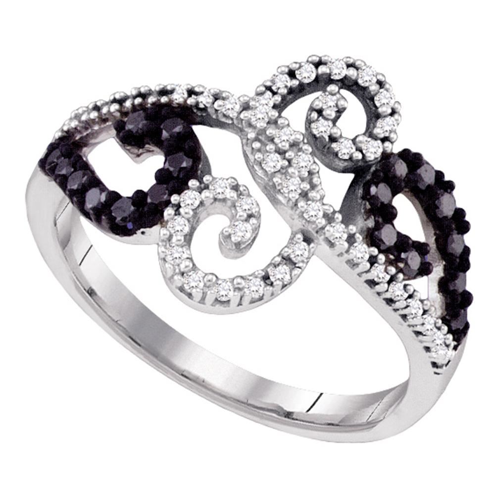 REF-30M2H- SKU: GD64685 ---- 0.33 CTW Black Color Diamond Whimsical Swirled Cocktail Ring 10KT White Gold