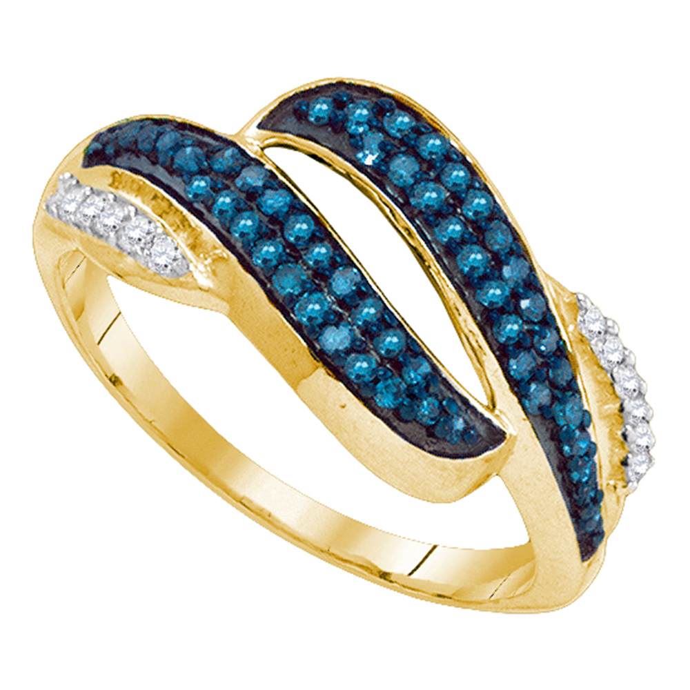 REF-19W4K- SKU: GD87300 ---- 0.33 CTW Blue Color Diamond Bypass Double Row Ring 10KT Yellow Gold