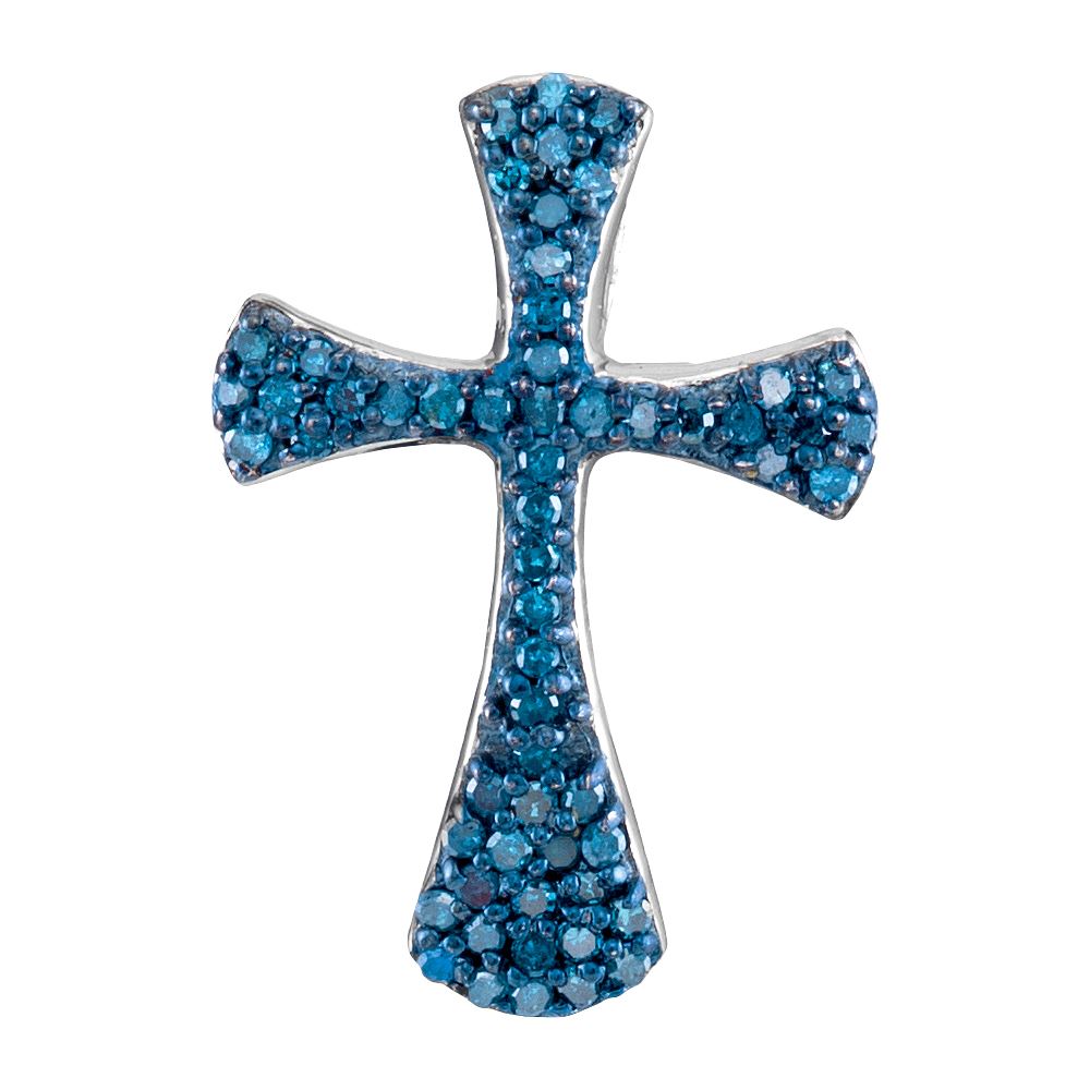 REF-16H4M- SKU: GD95997 ---- 0.33 CTW Blue Color Diamond Cross Pendant 10KT White Gold
