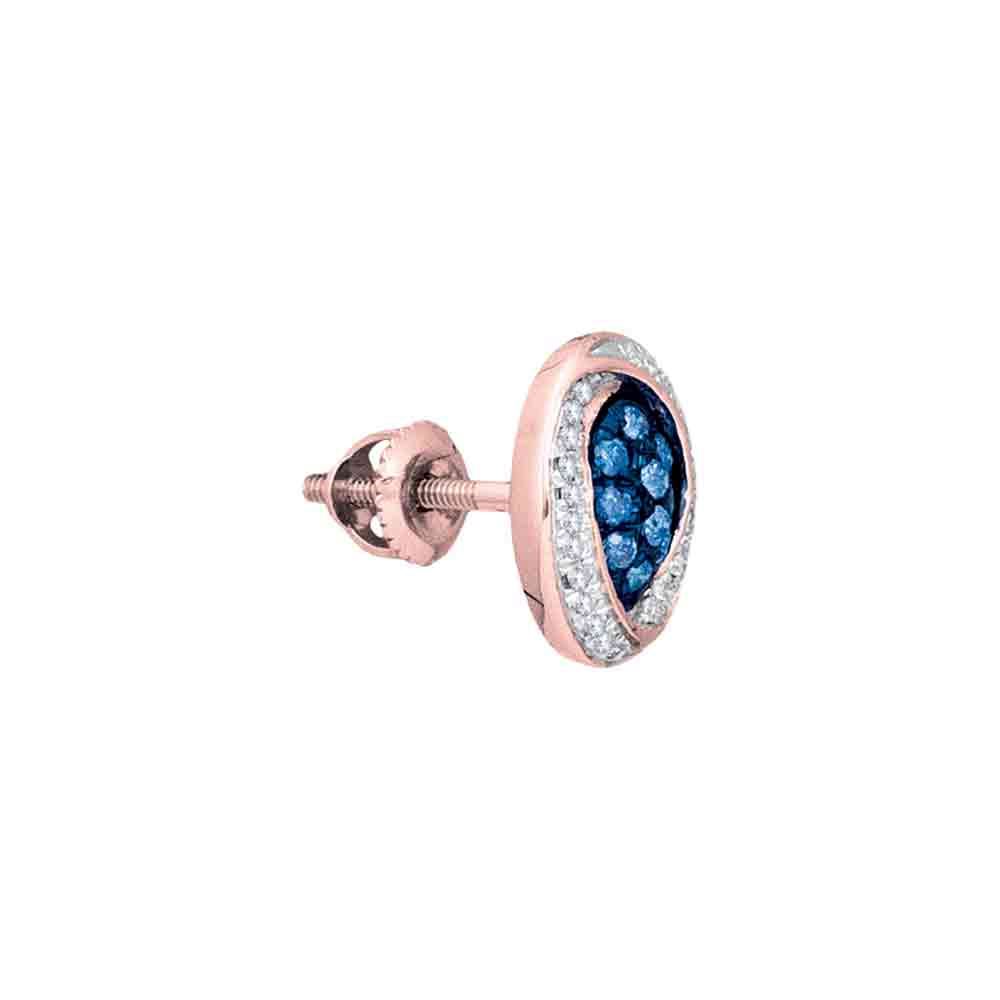 REF-30H2M- SKU: GD91561 ---- 0.33 CTW Blue Color Diamond Oval Cluster Earrings 10KT Rose Gold