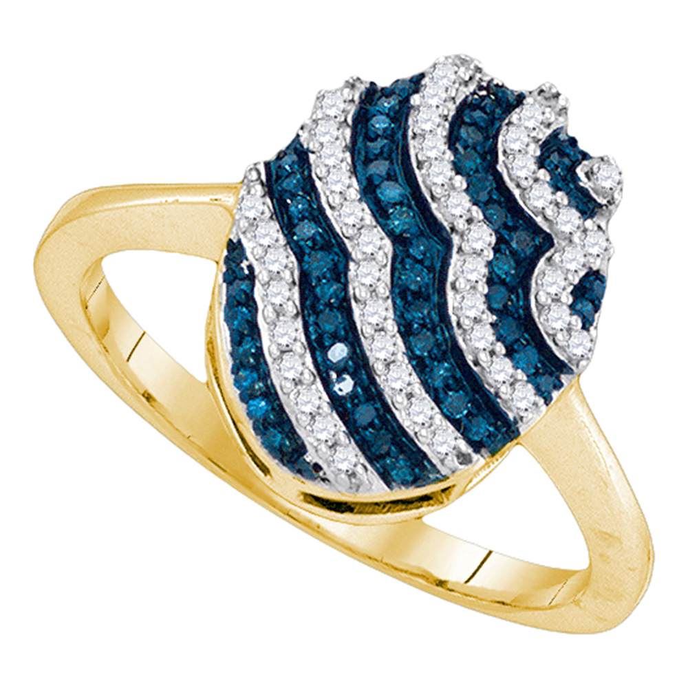 REF-24X2Y- SKU: GD89580 ---- 0.33 CTW Blue Color Diamond Oval Cluster Ring 10KT Yellow Gold