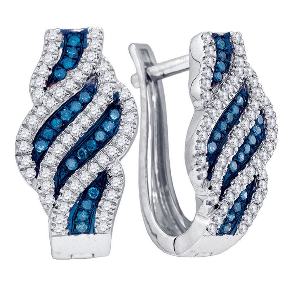 REF-44Y9X- SKU: GD84124 ---- 0.33 CTW Blue Color Diamond Spiral Hoop Earrings 10KT White Gold