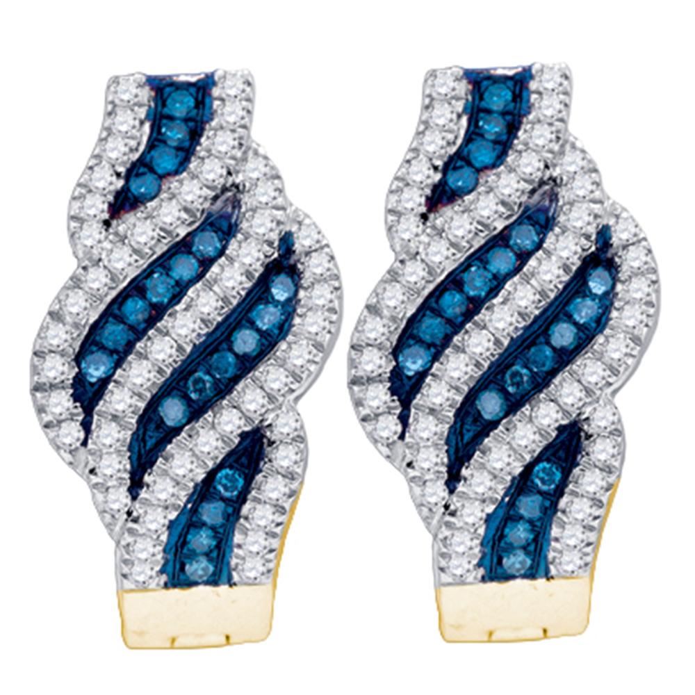 REF-44K9W- SKU: GD84212 ---- 0.33 CTW Blue Color Diamond Spiral Hoop Earrings 10KT Yellow Gold