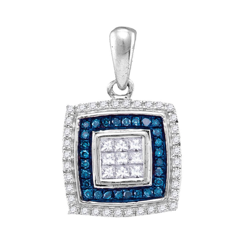 REF-24W2K- SKU: GD104316 ---- 0.33 CTW Blue Color Diamond Square Pendant 10KT White Gold