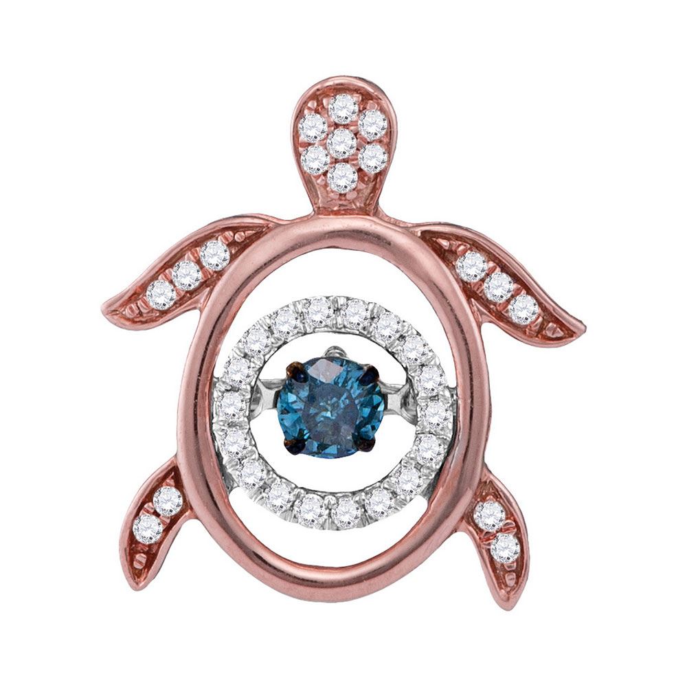 REF-37W5K- SKU: GD110017 ---- 0.33 CTW Blue Color Diamond Turtle Tortoise Moving Pendant 10KT Rose Gold